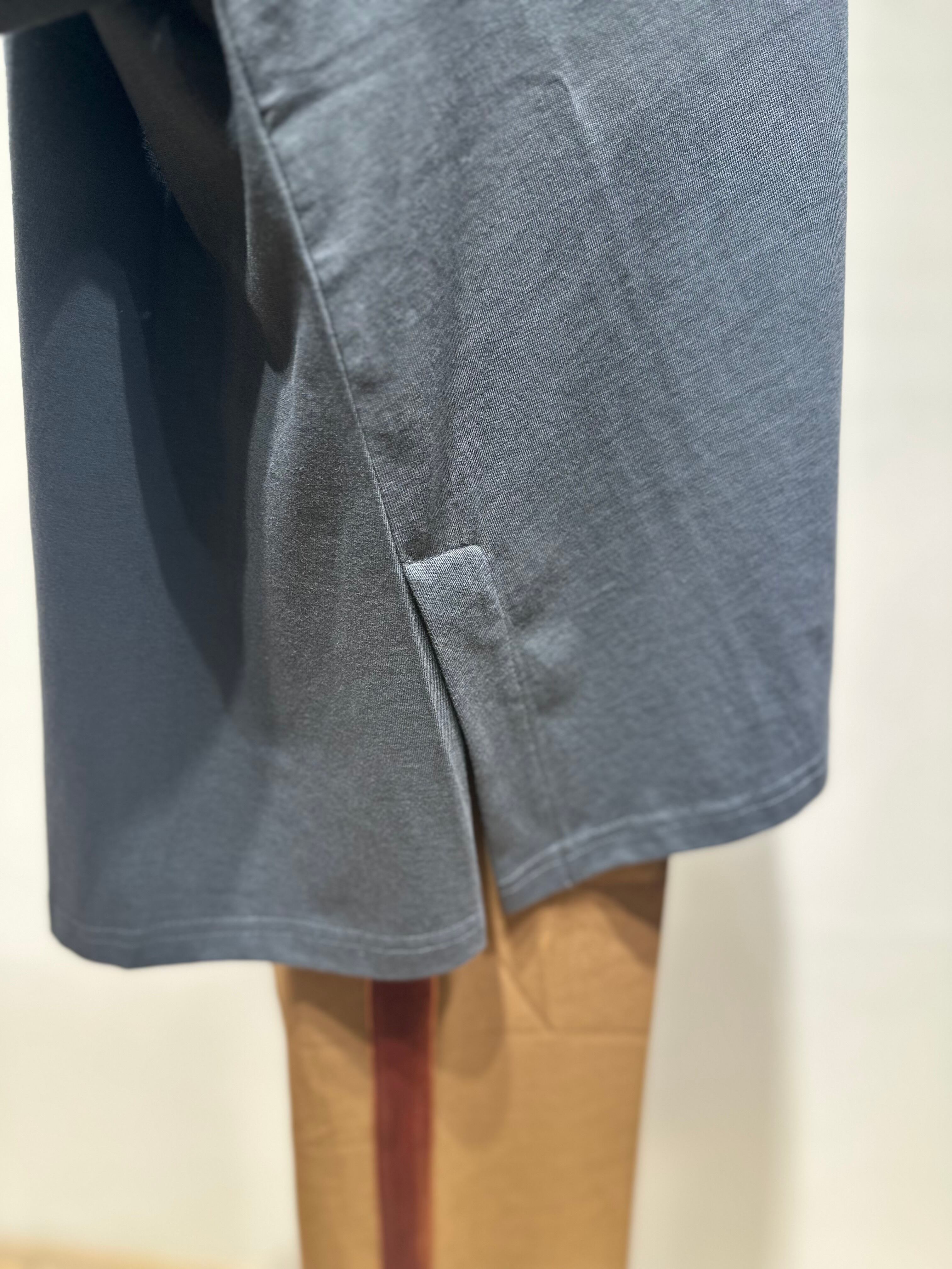 見頃はフレアになっており、両脇裾にベンツ開きが施されているので、さりげないフレアシルエットで体型カバーもできます。