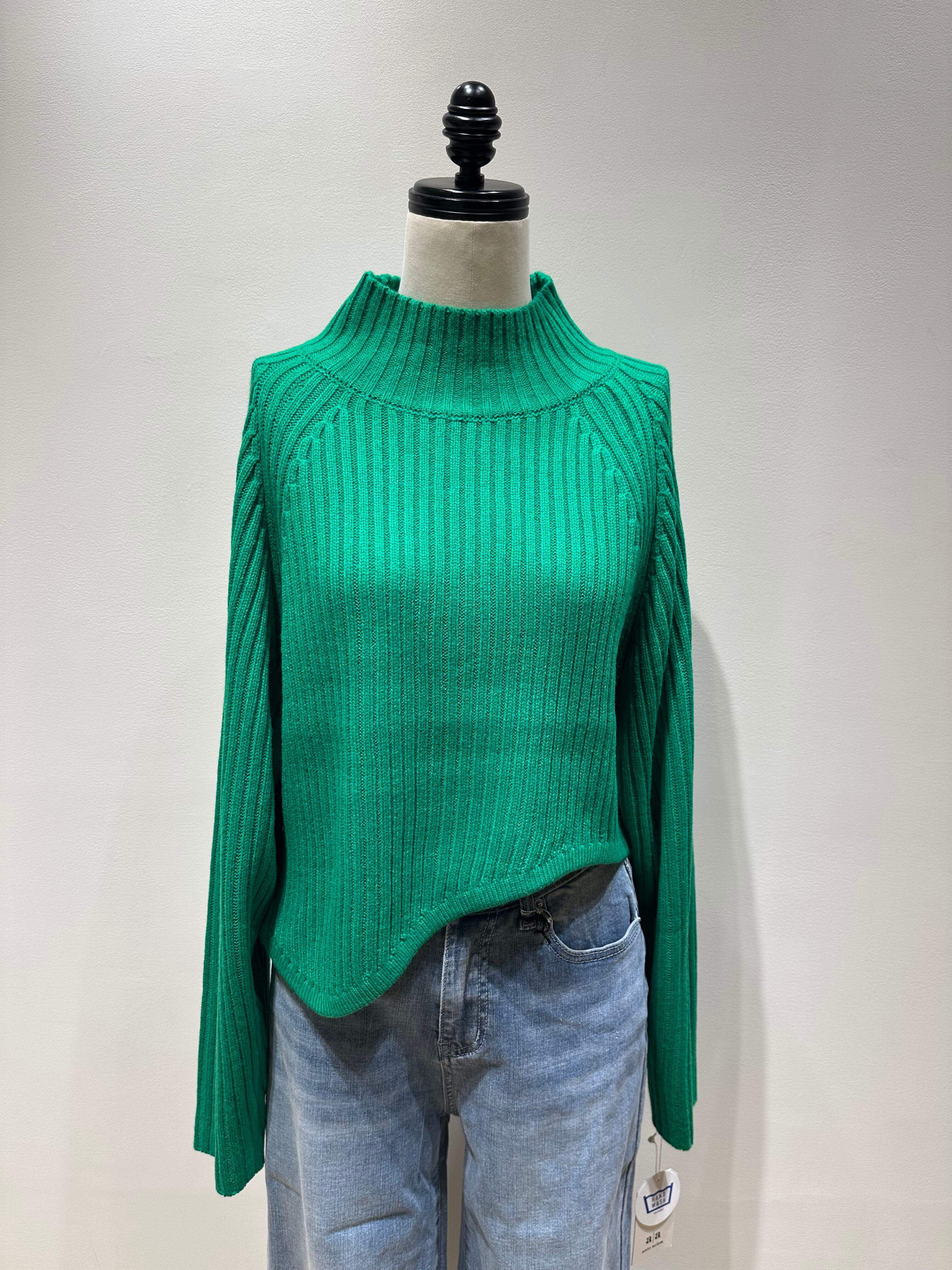 立体的なリブ編みがボディラインをすっきり見せてくれる、アシンメトリーデザインのニットトップス。