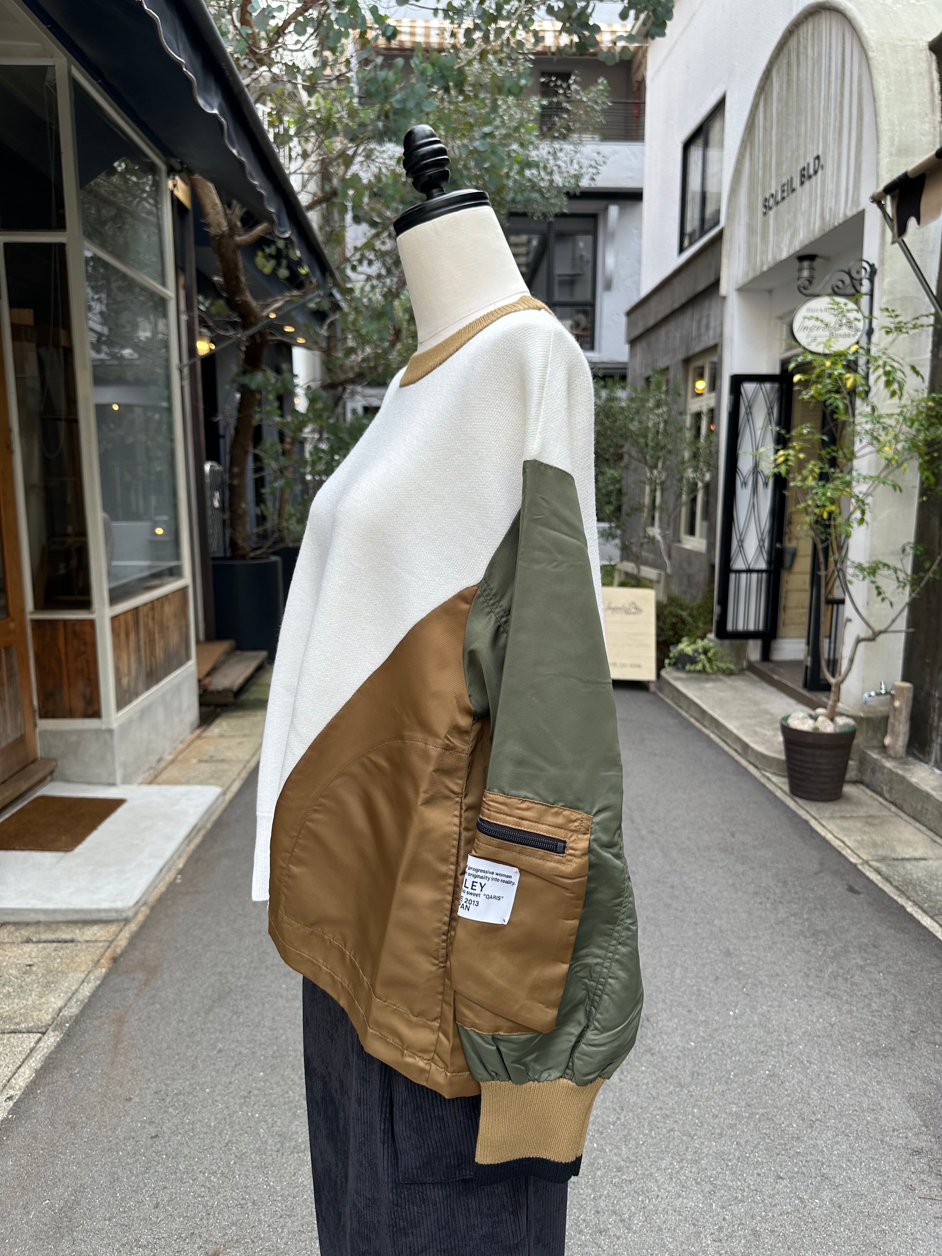 左袖のポケットデザインが可愛いドッキングプルオーバー