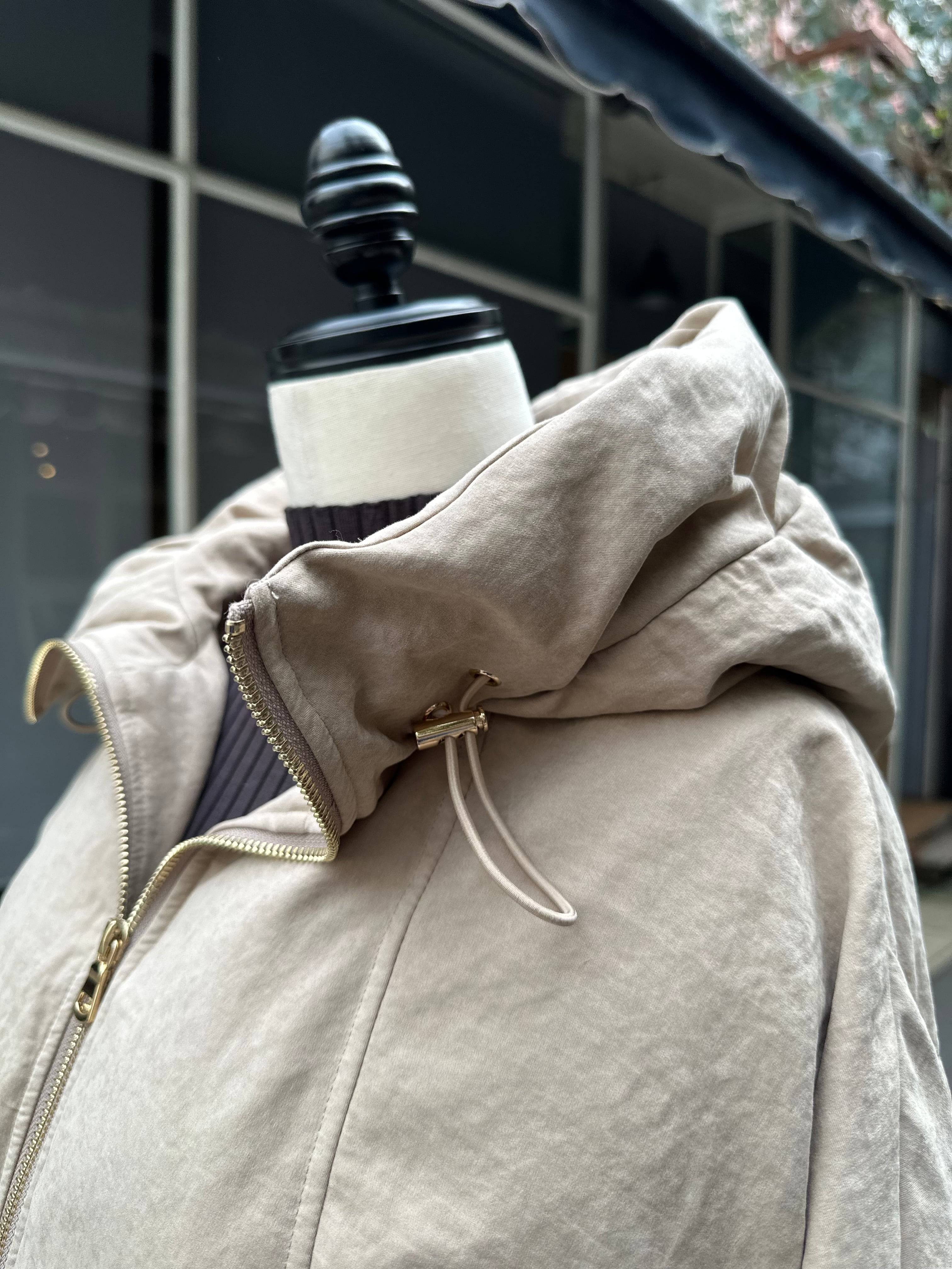 洗練されたシルエットが魅力のCHIGNONパフィードルマンコートは、軽やかさと暖かさを兼ね備えた一着です。大きめの襟とゆったりとしたシルエットが、どんなスタイルにもマッチし、上品な雰囲気を演出します。