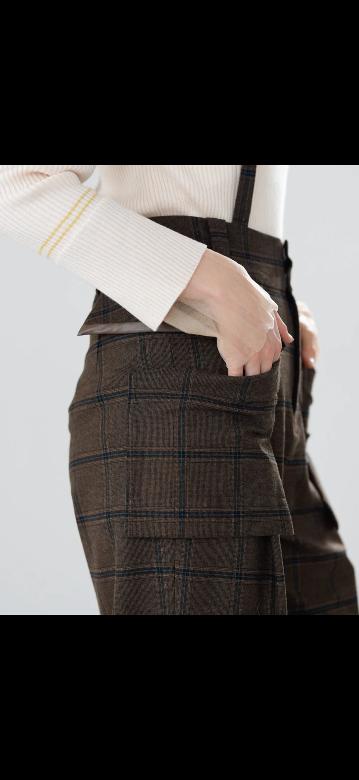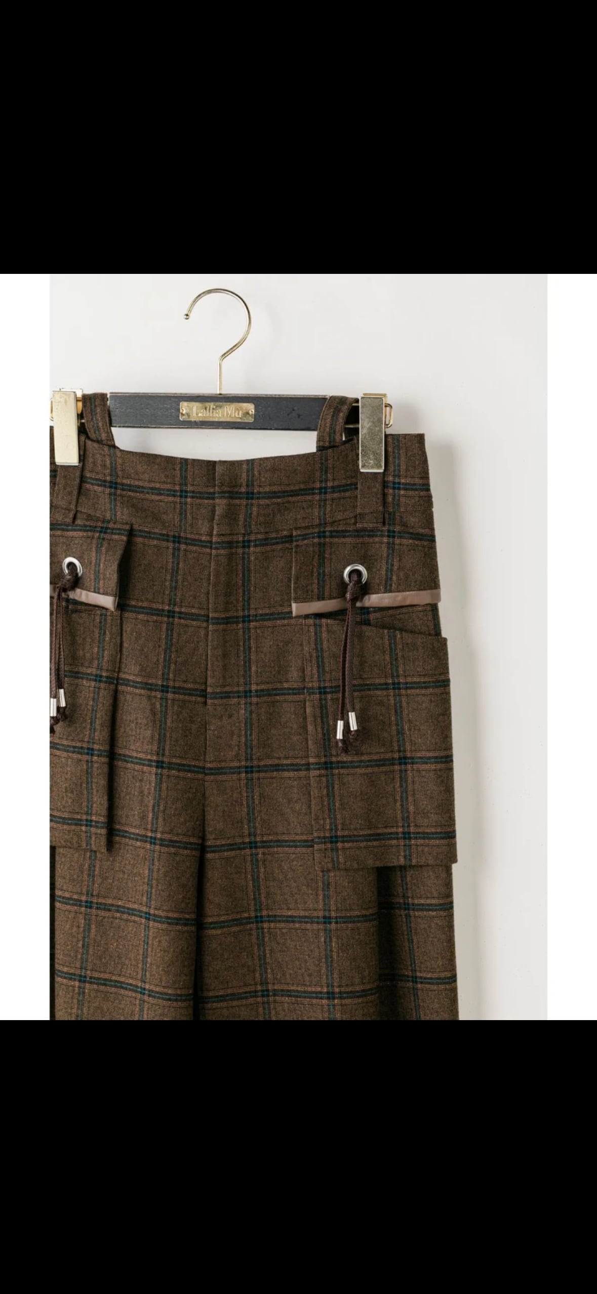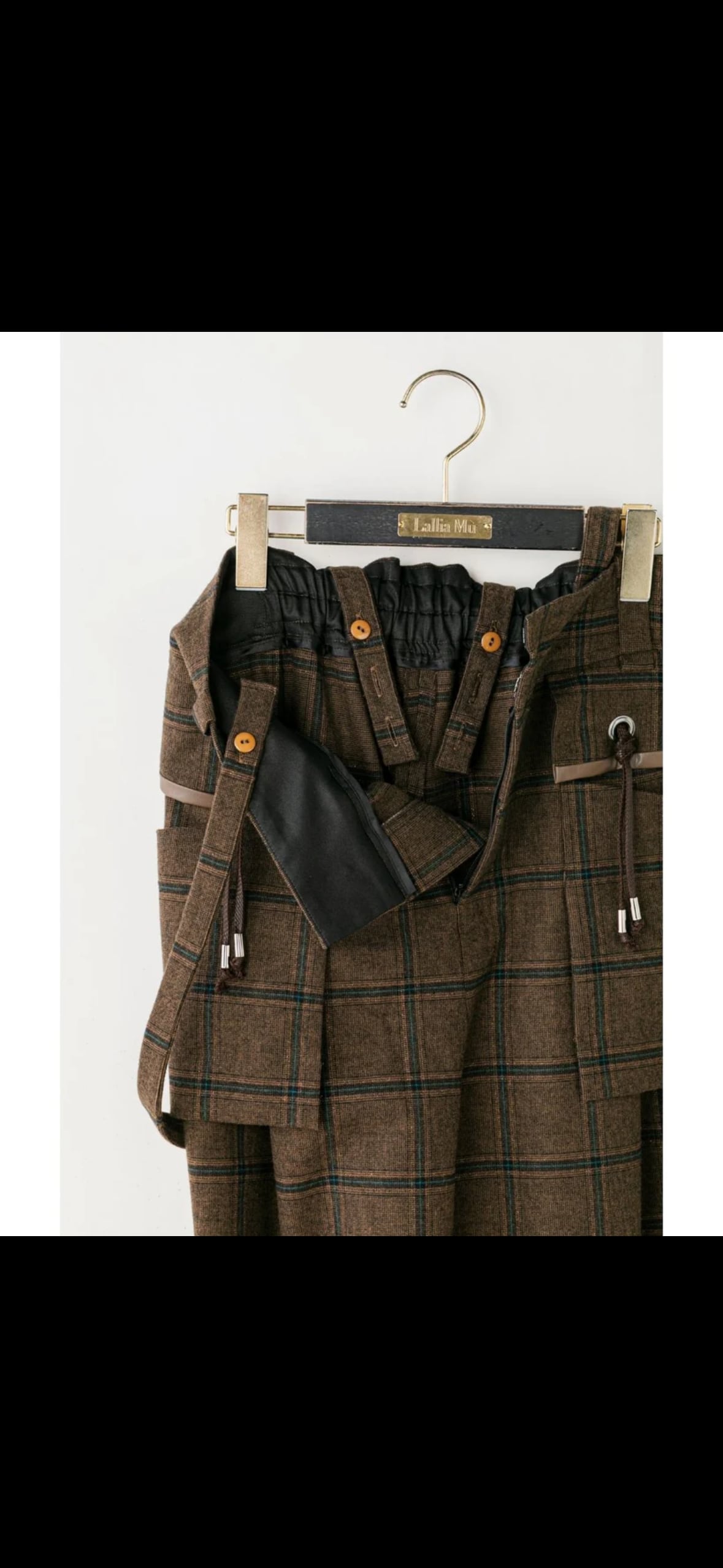 Lallia Mu'(ラリアムー)アウトポケットチェックサスペンダーパンツ