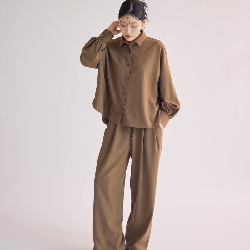 タックワイドパンツ【253951】とセットアップでまとまりのあるコーディネートも可。