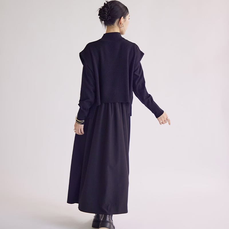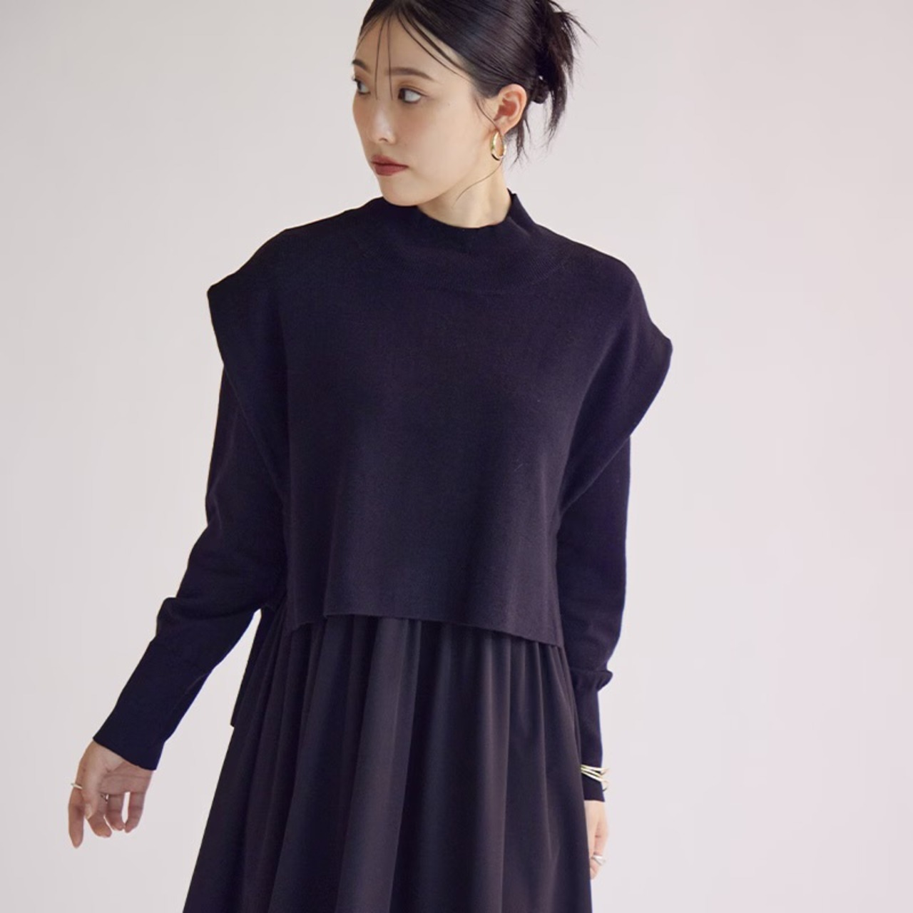 昨年も人気だったニット布帛ドッキングワンピが新色で登場しました。