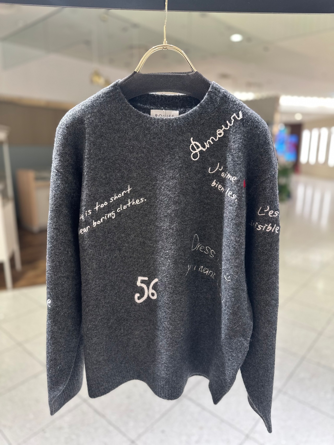 存在感のある刺繍ロゴが特徴の、柔らかなニット。肌に優しい触り心地が魅力です。ストレッチ性も抜群で、快適な着用感を提供します。 デザインには、華やかな刺繍ロゴをあしらい、カジュアルなコーディネートにぴったりのアイテムに仕上げました。ゆったりとしたシルエットで、リラックスした雰囲気を演出できます。デニムやスカートとの相性も抜群で、幅広いスタイリングが楽しめます。