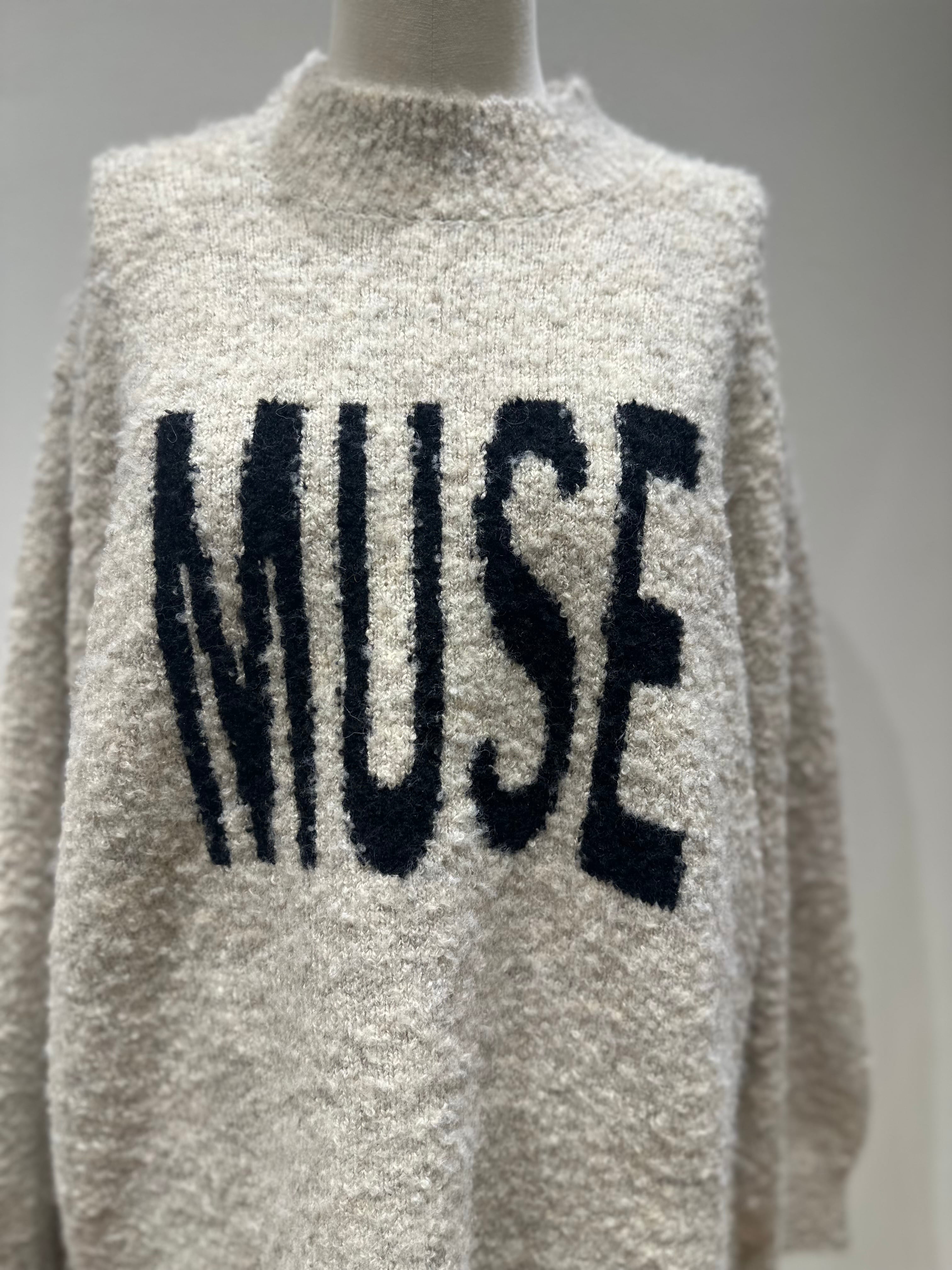 ふんわり柔らかなブークレ素材を、使用したニットプルオーバー。