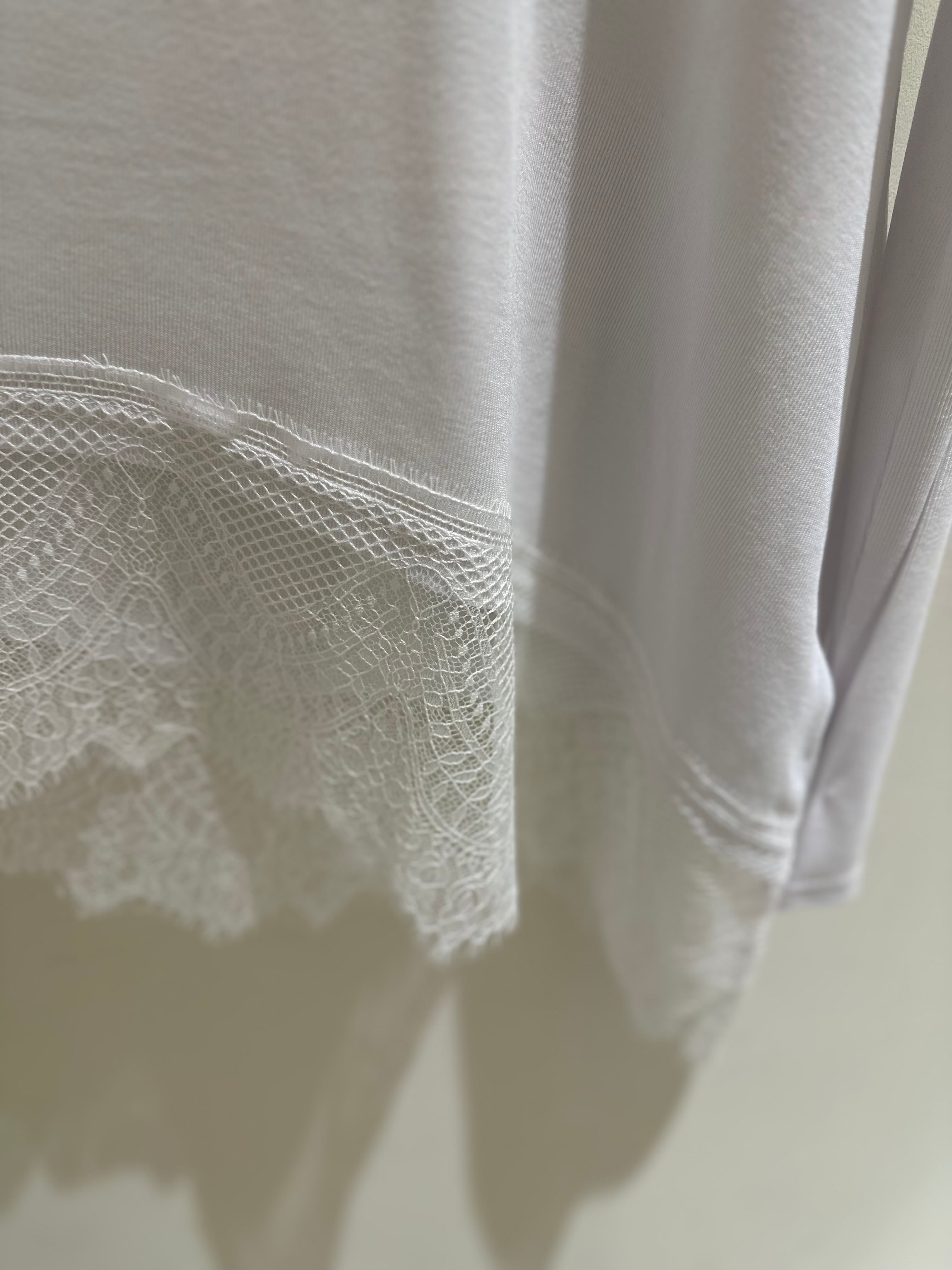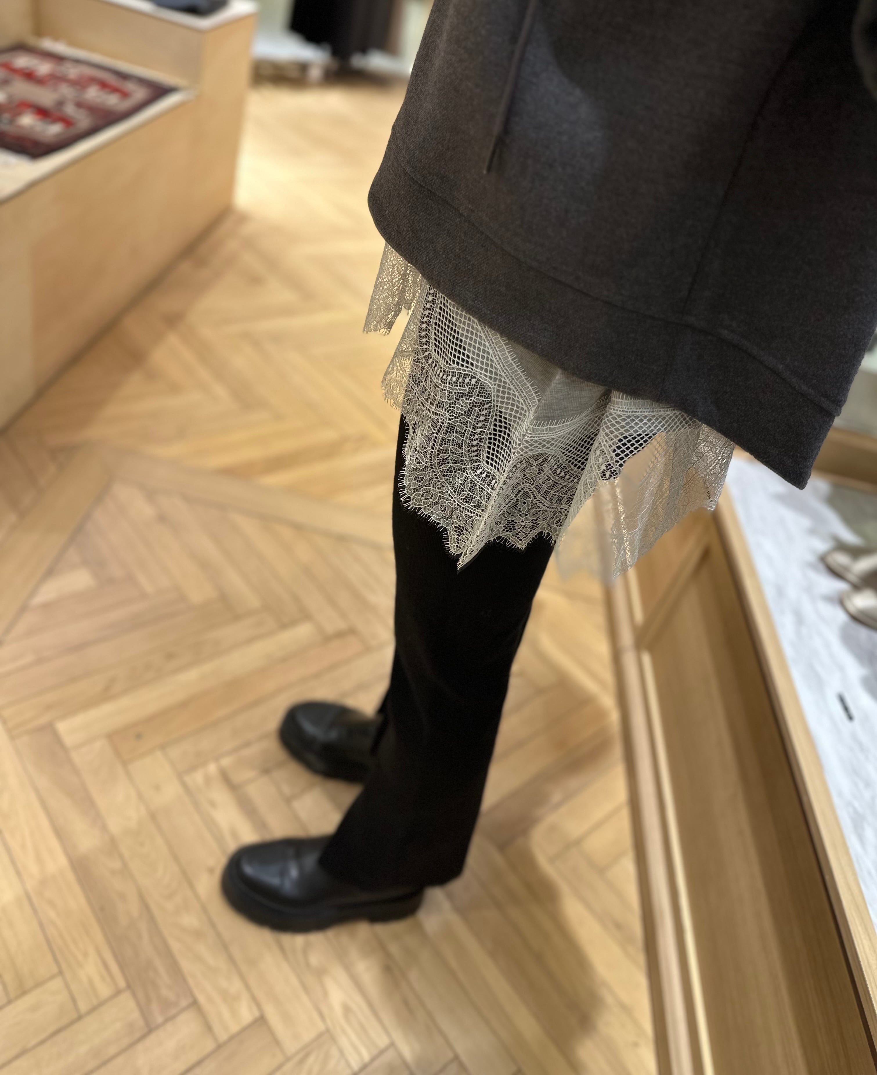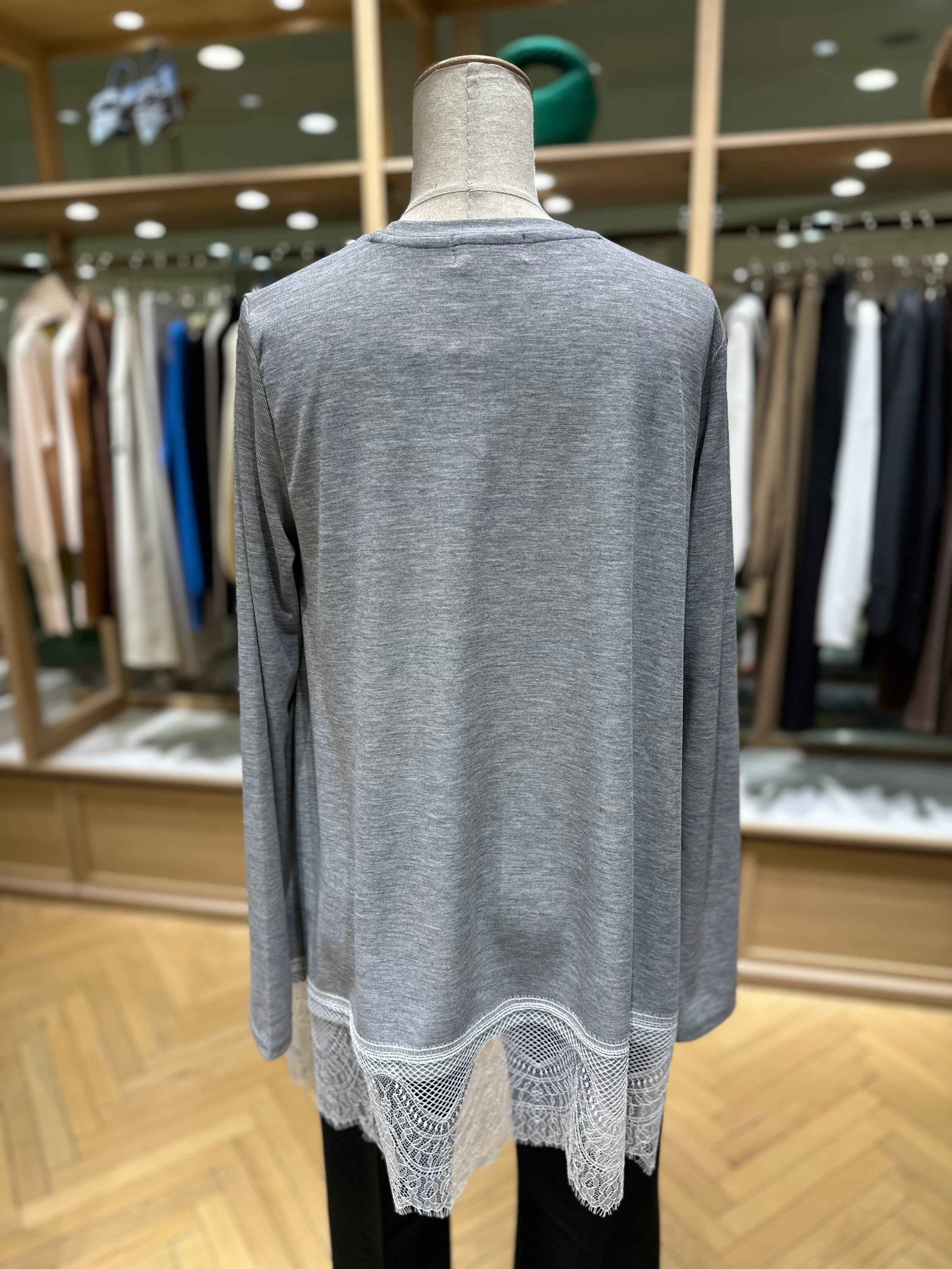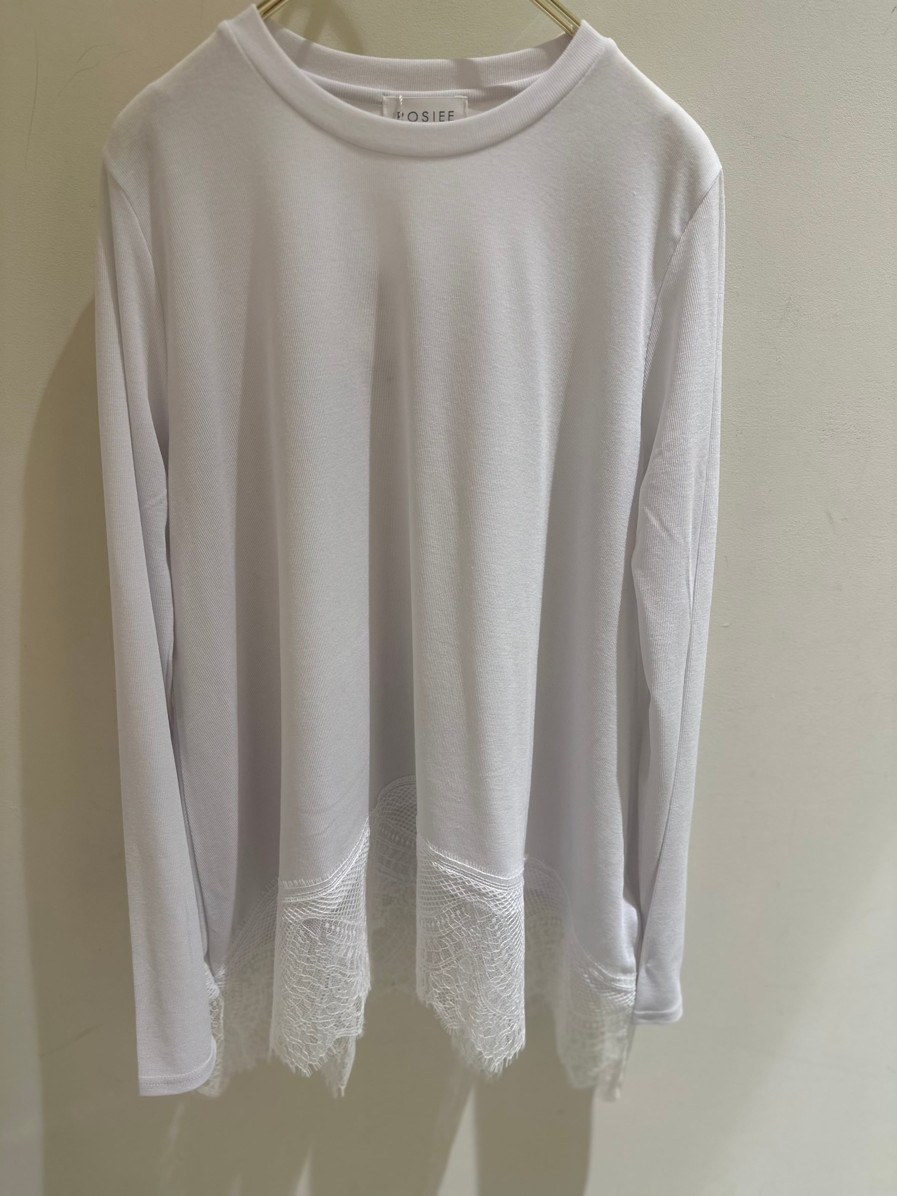 シンプルなカットソーに、裾のレースでさりげない華やかさをプラス。