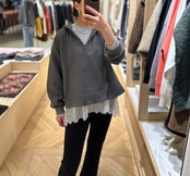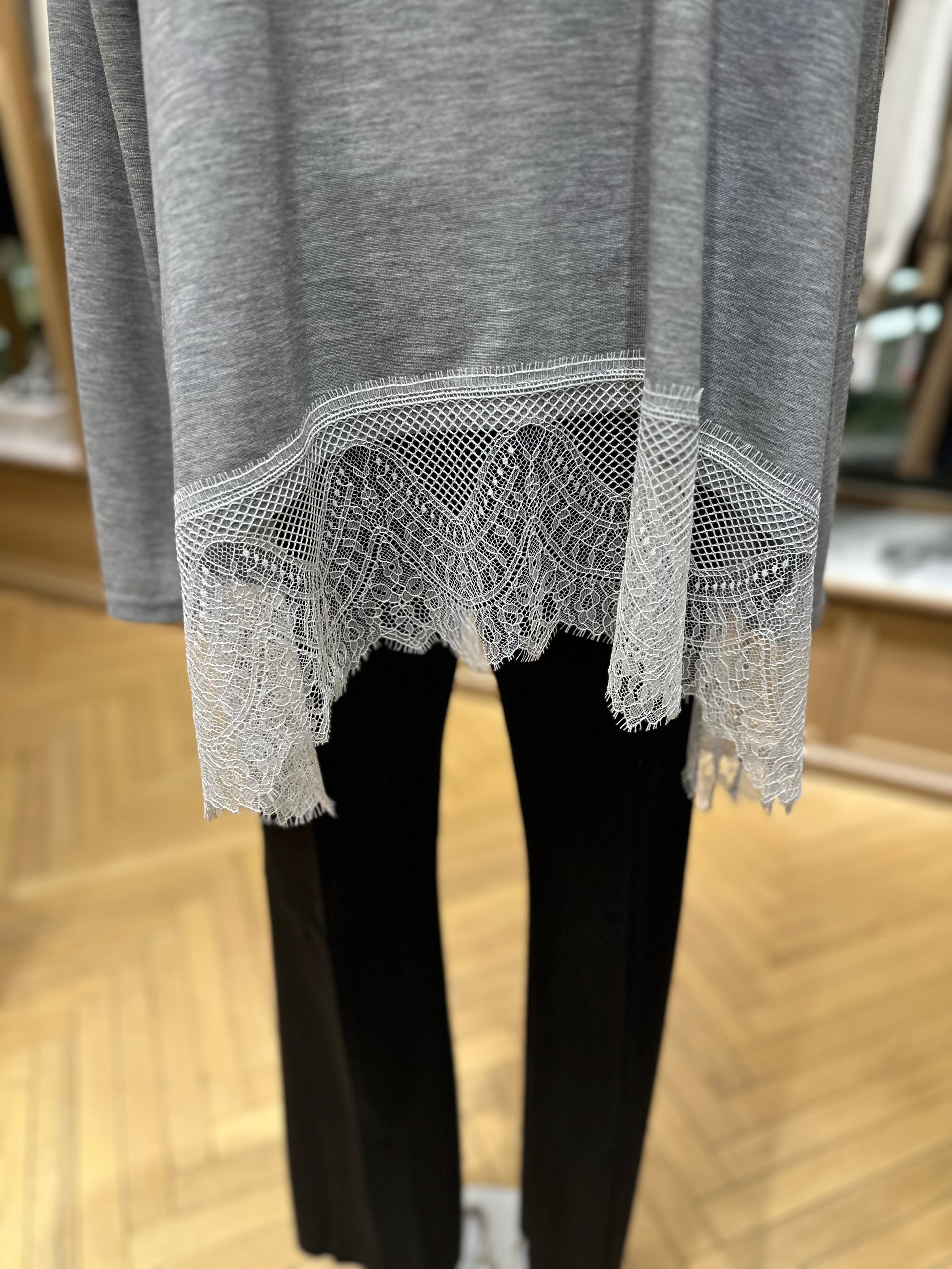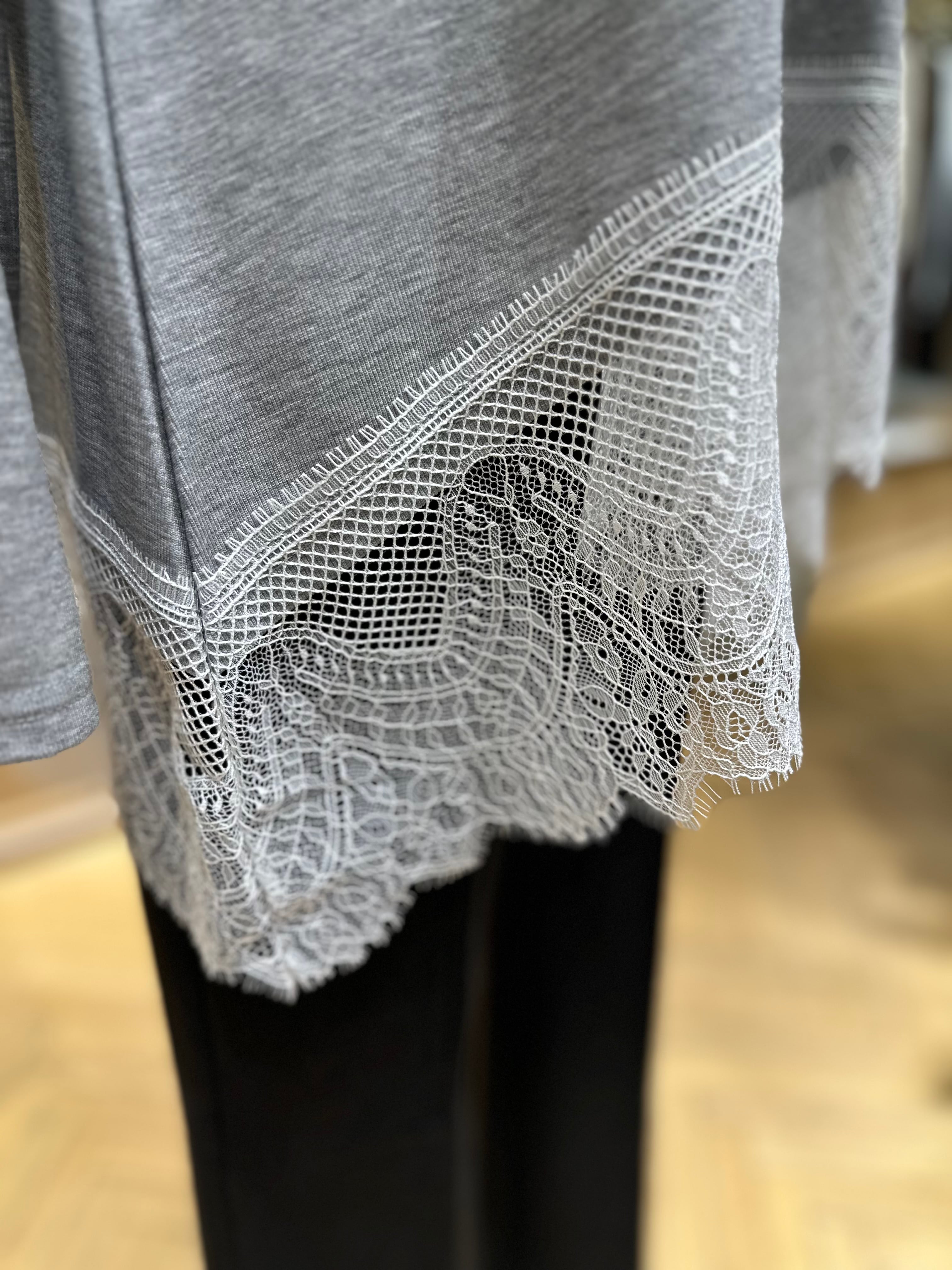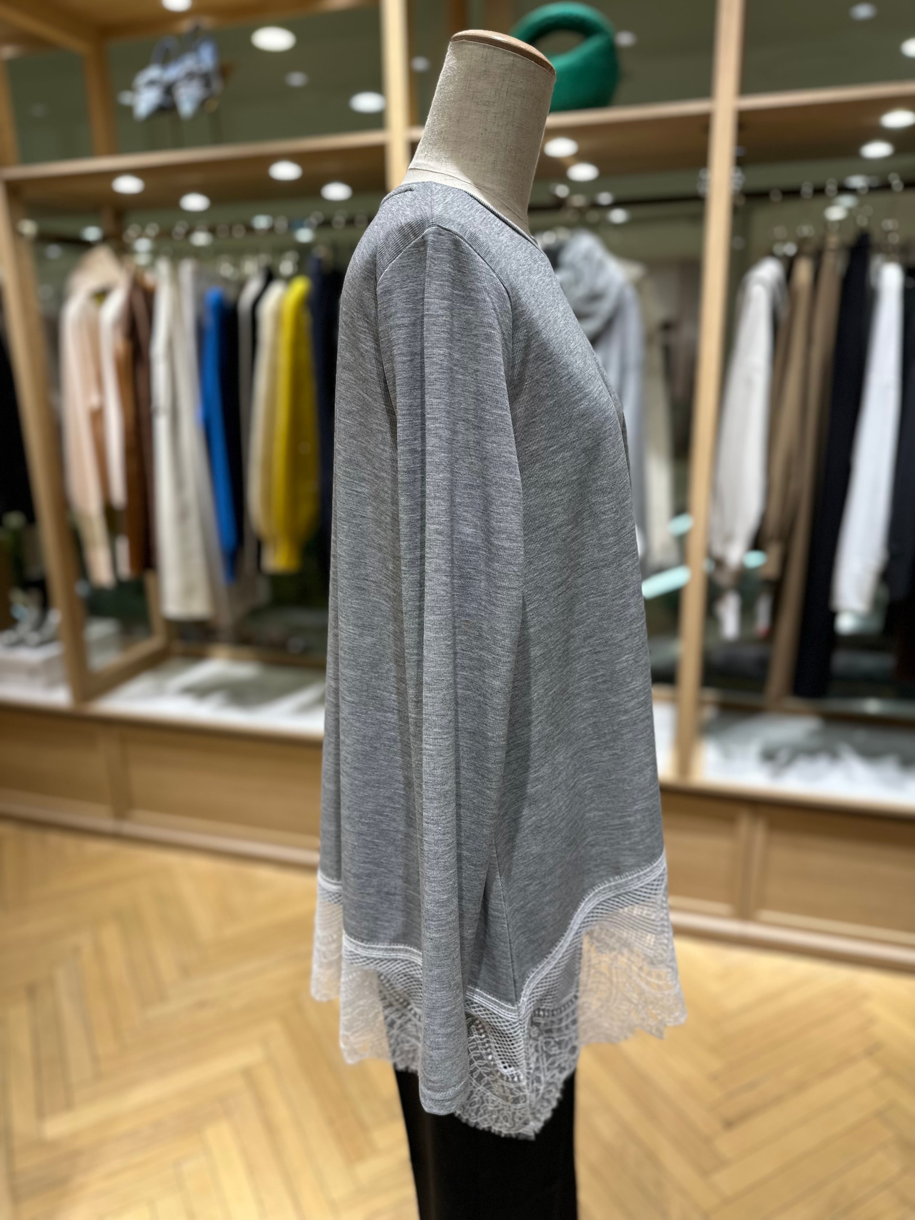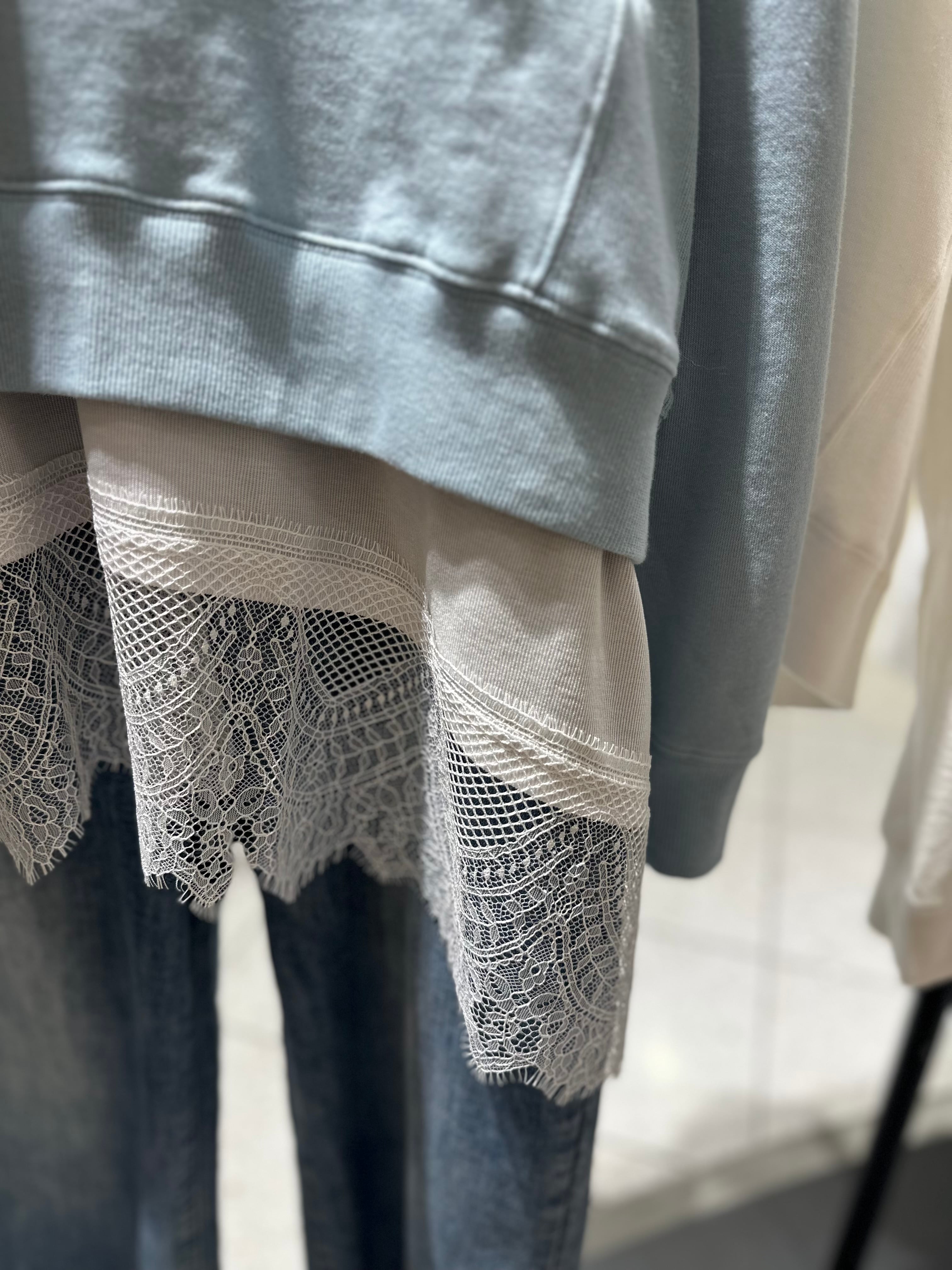 シンプルなカットソーに、裾のレースでさりげない華やかさをプラス。
