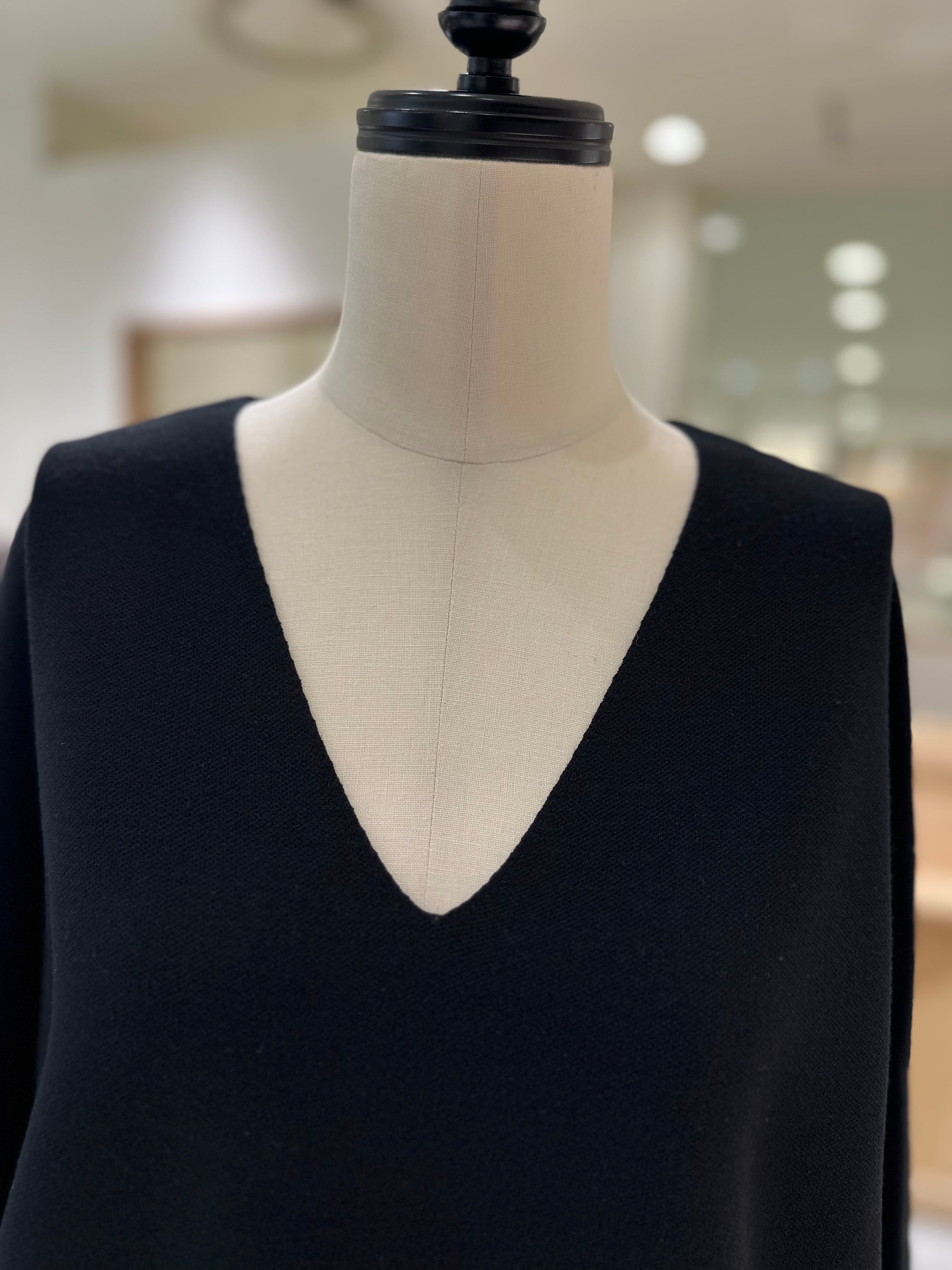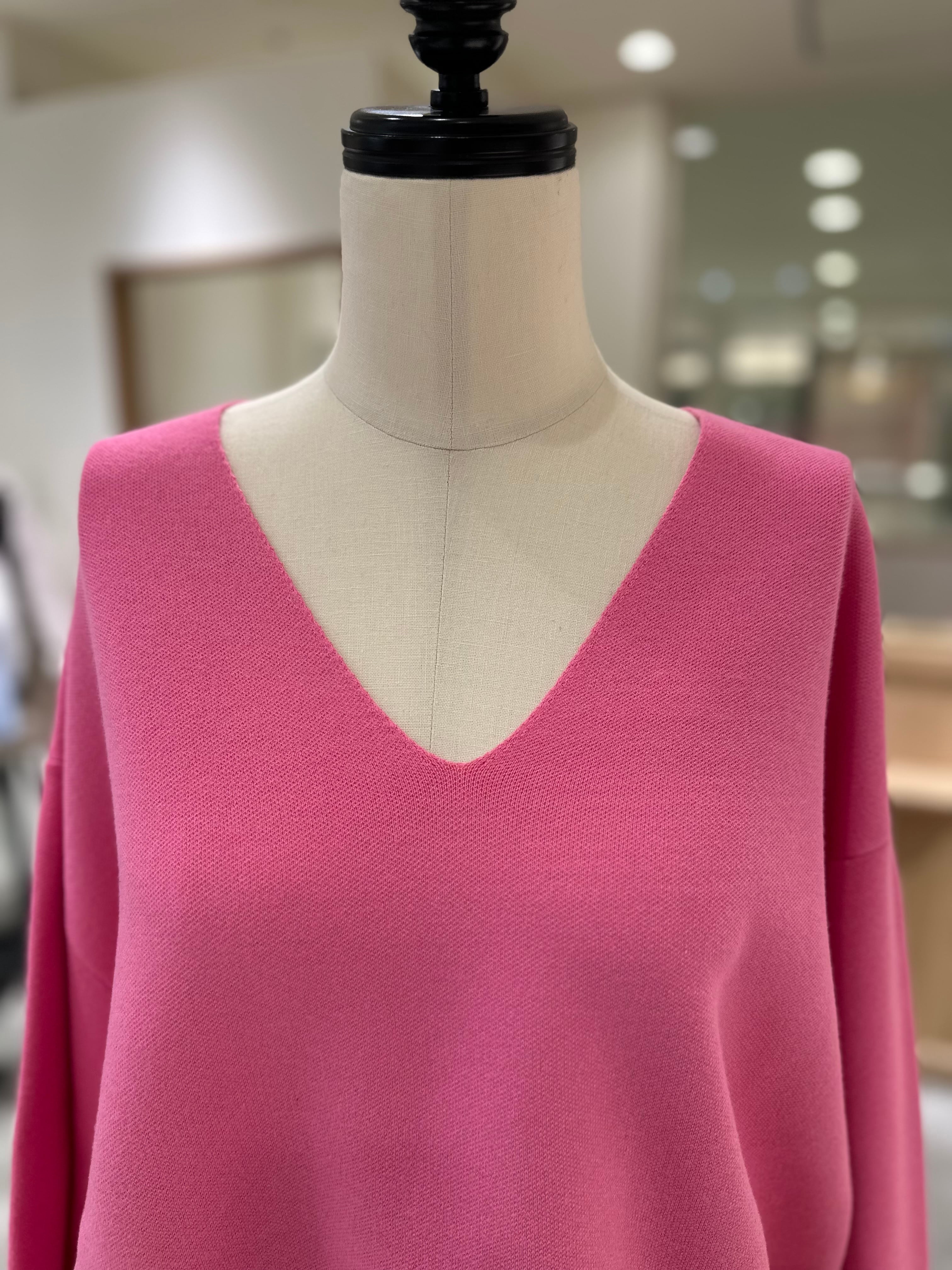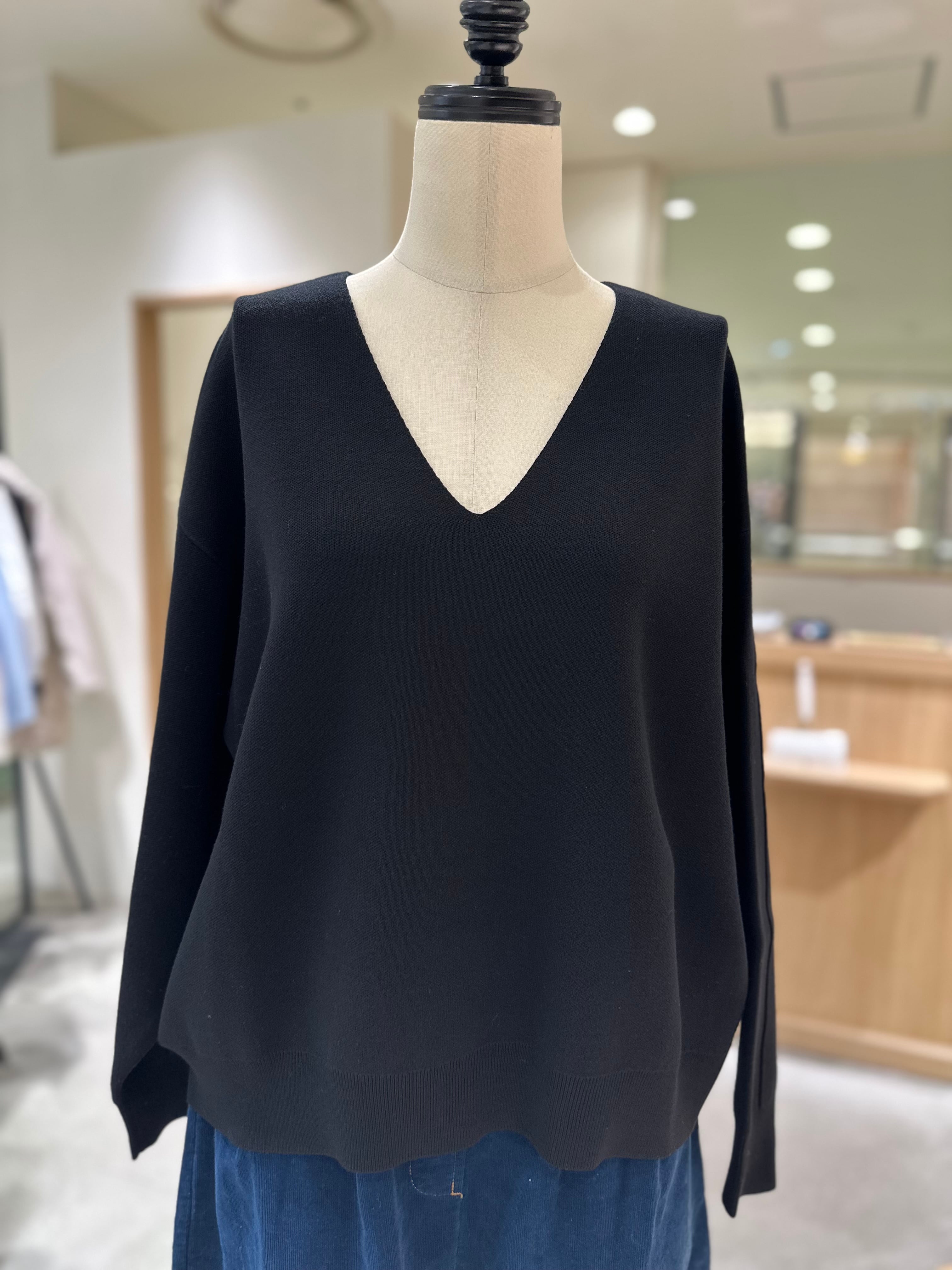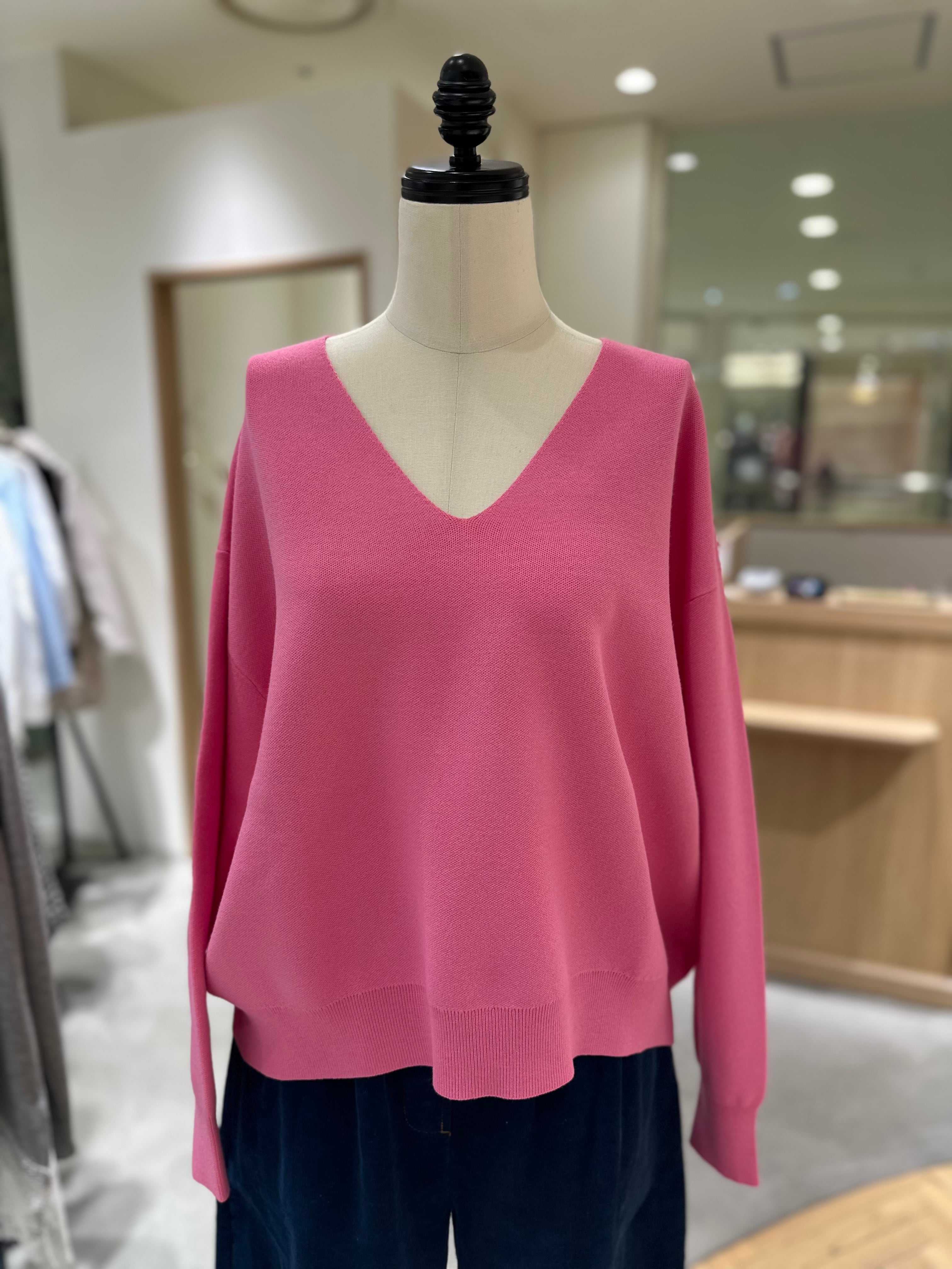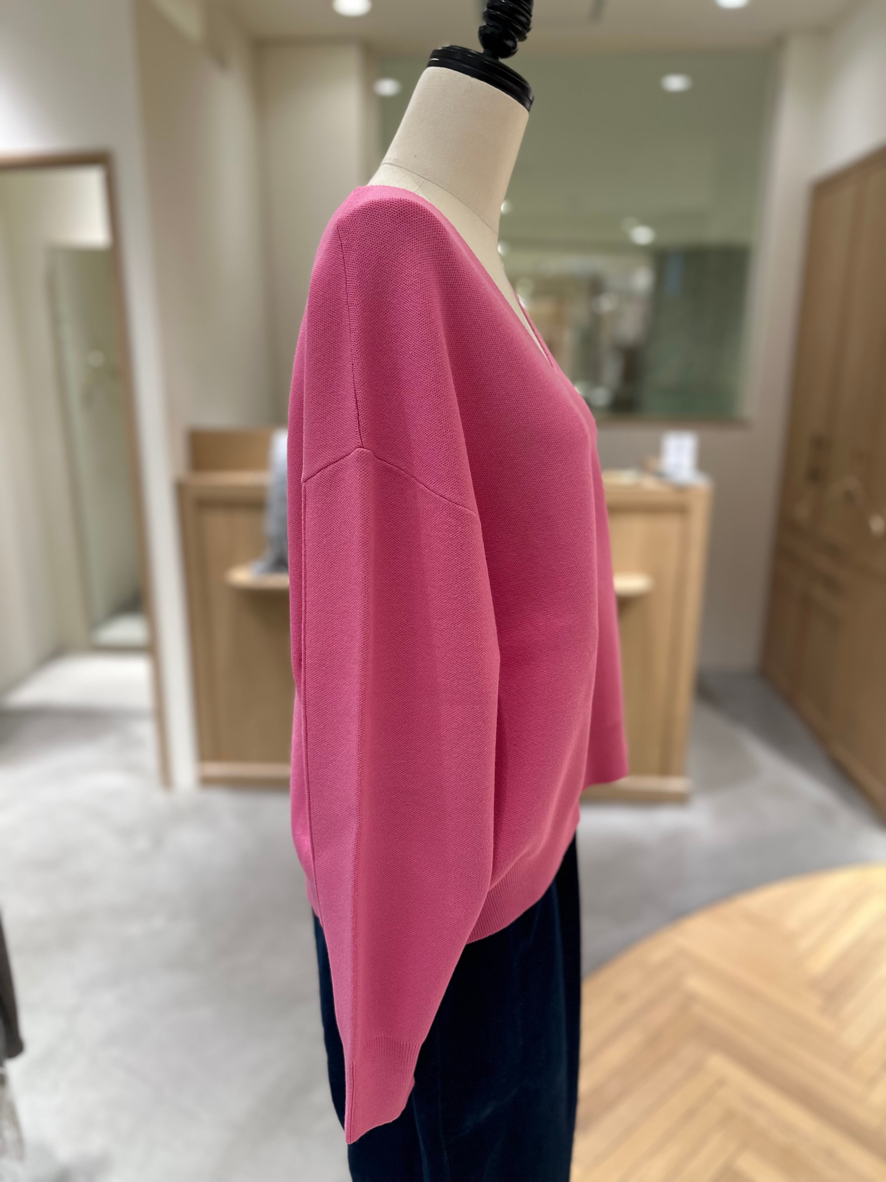 オーバーサイズでゆるっとしたスタイリングにぴったりで華奢な印象のVネックニット。