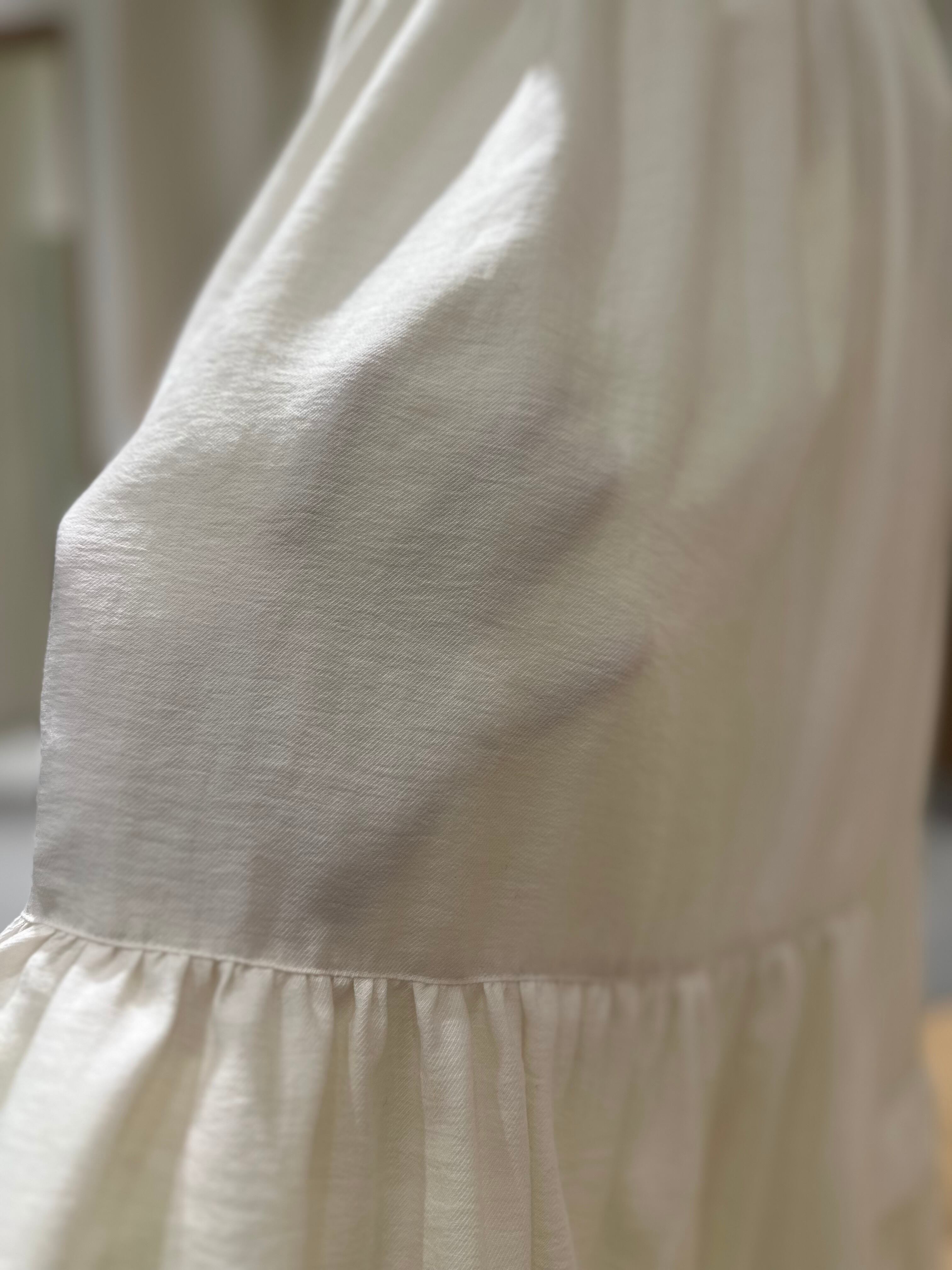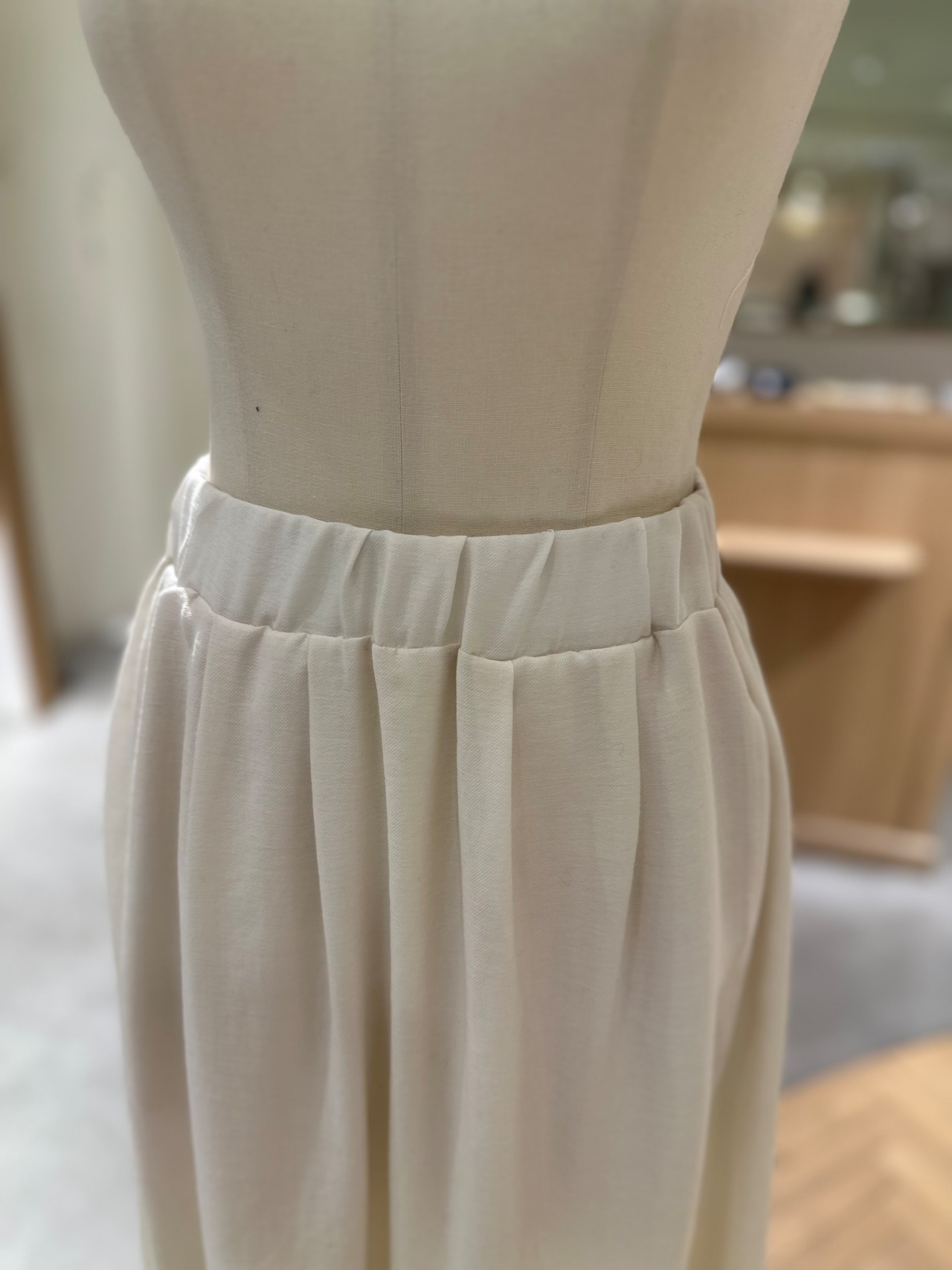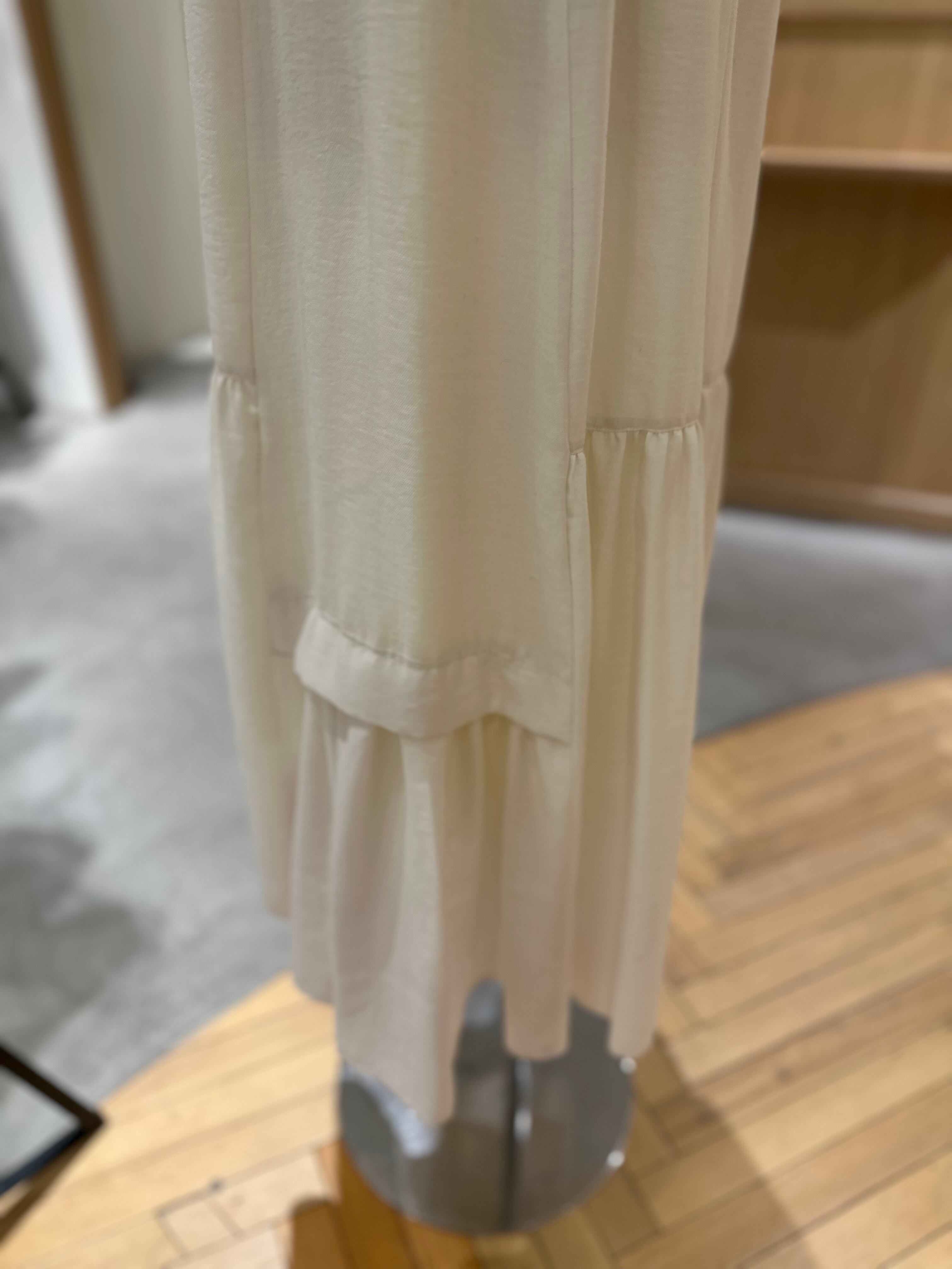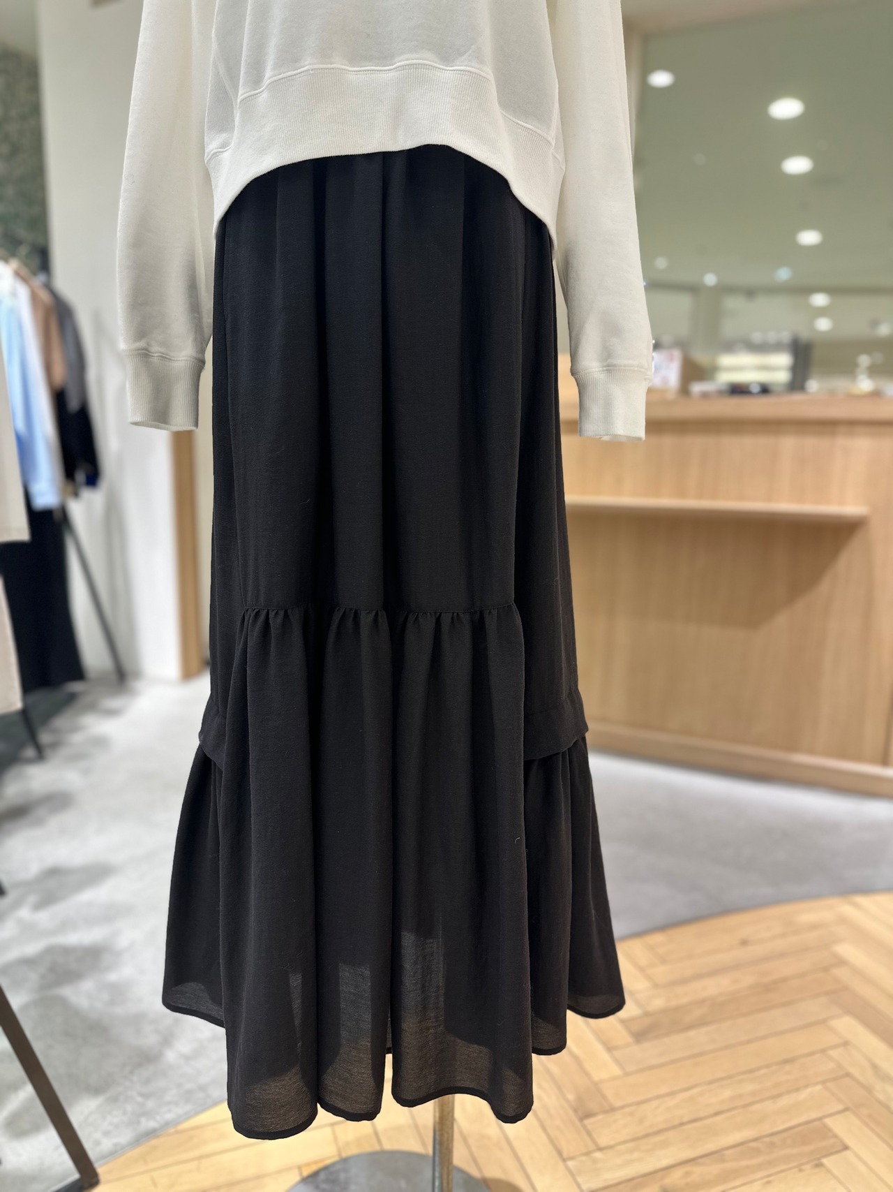 切り替えデザインで程よくボリュームを出しつつ、広がりすぎなりシルエットが大人っぽい一枚です。