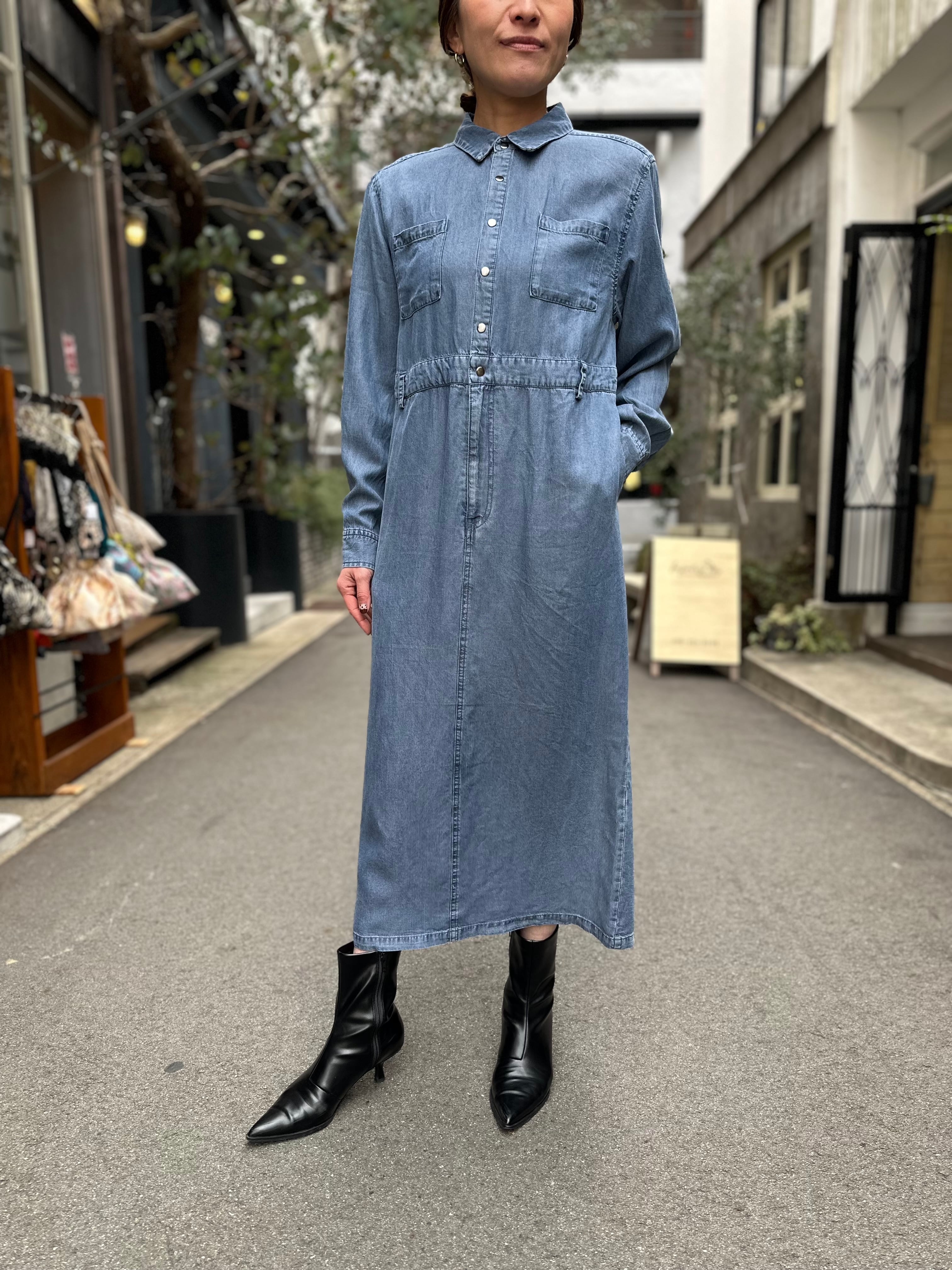 軽やかなテンセル素材で仕立てた、デニム風シャツワンピース。
