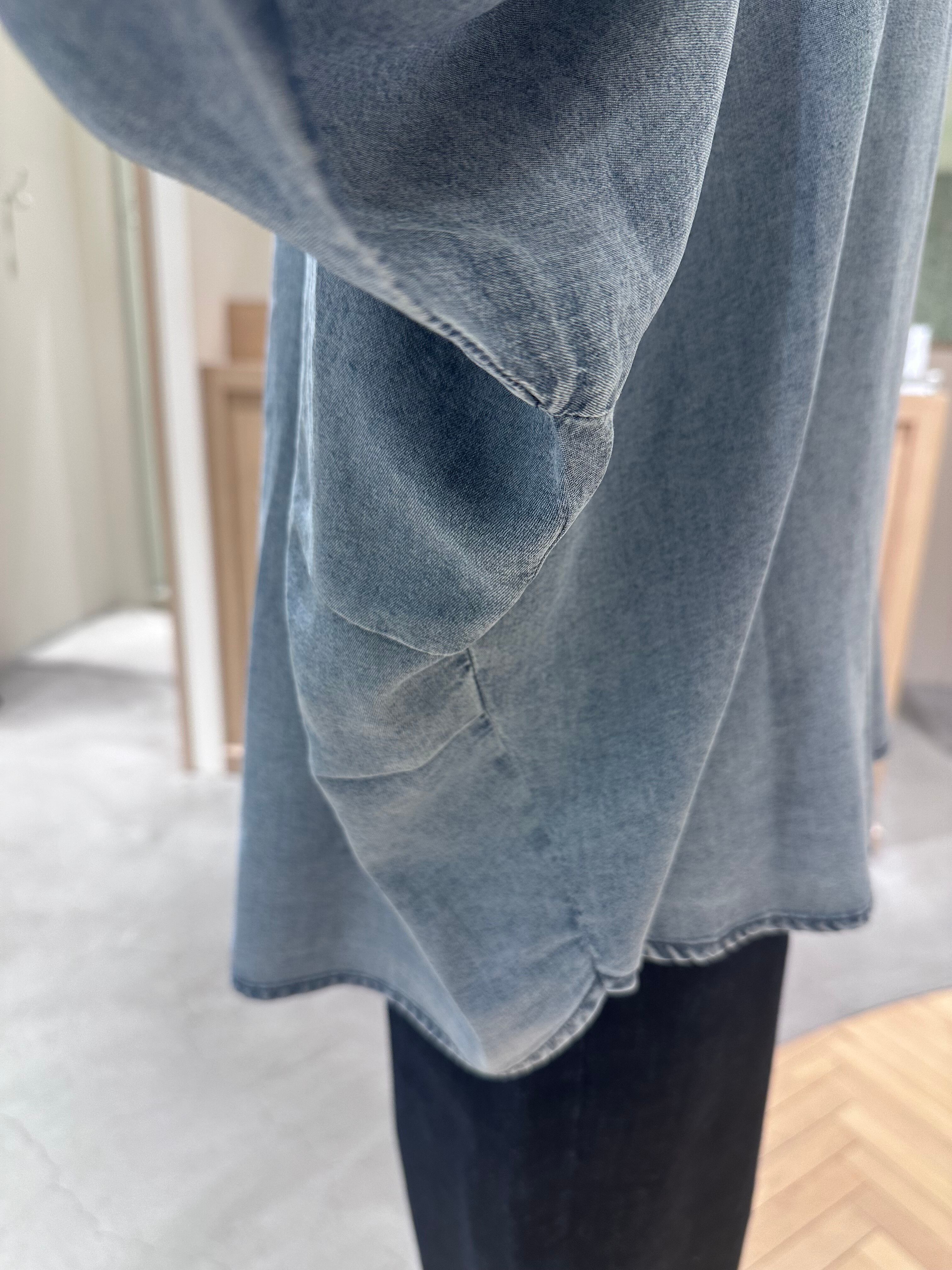 前後差のある丈感とゆったりシルエットで体型を拾わず、こなれ感のある着こなしが叶います。