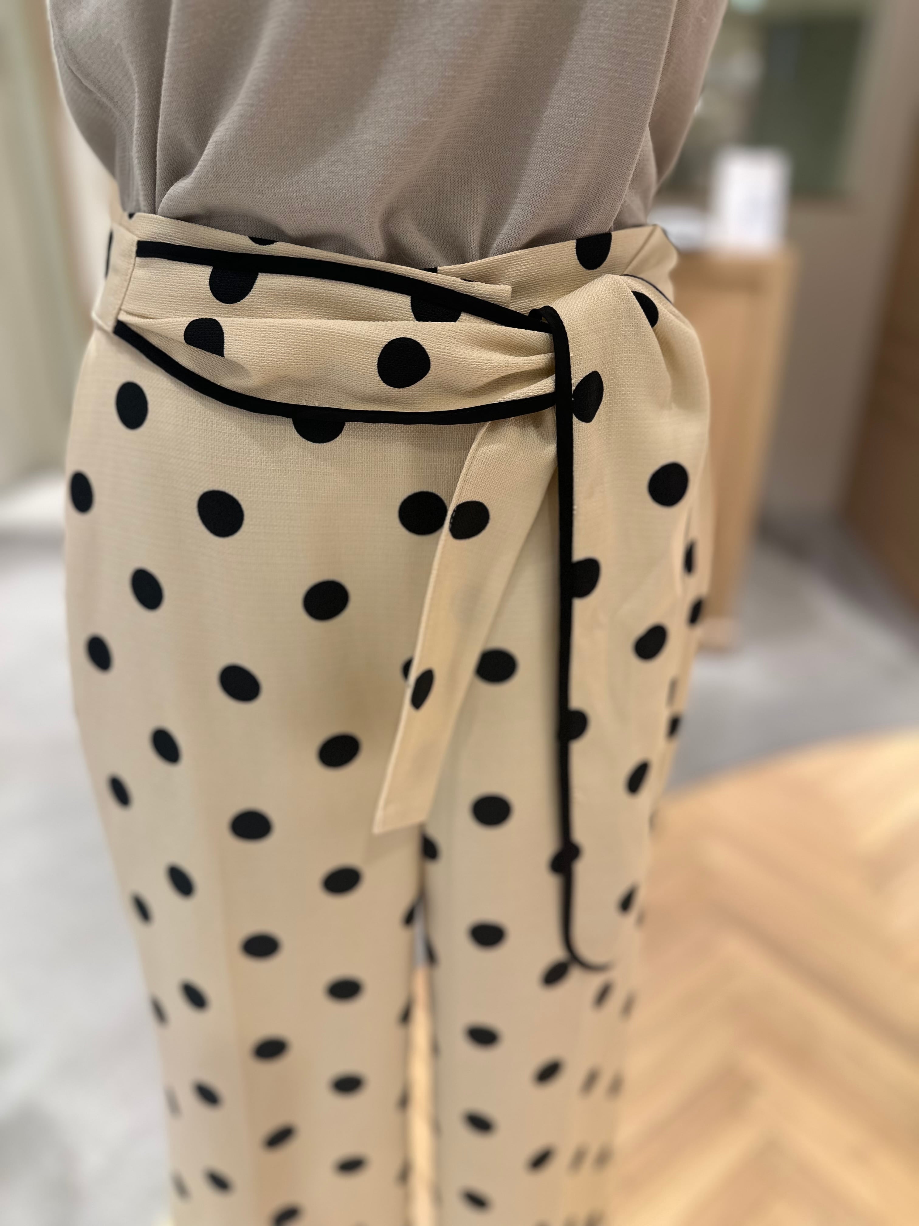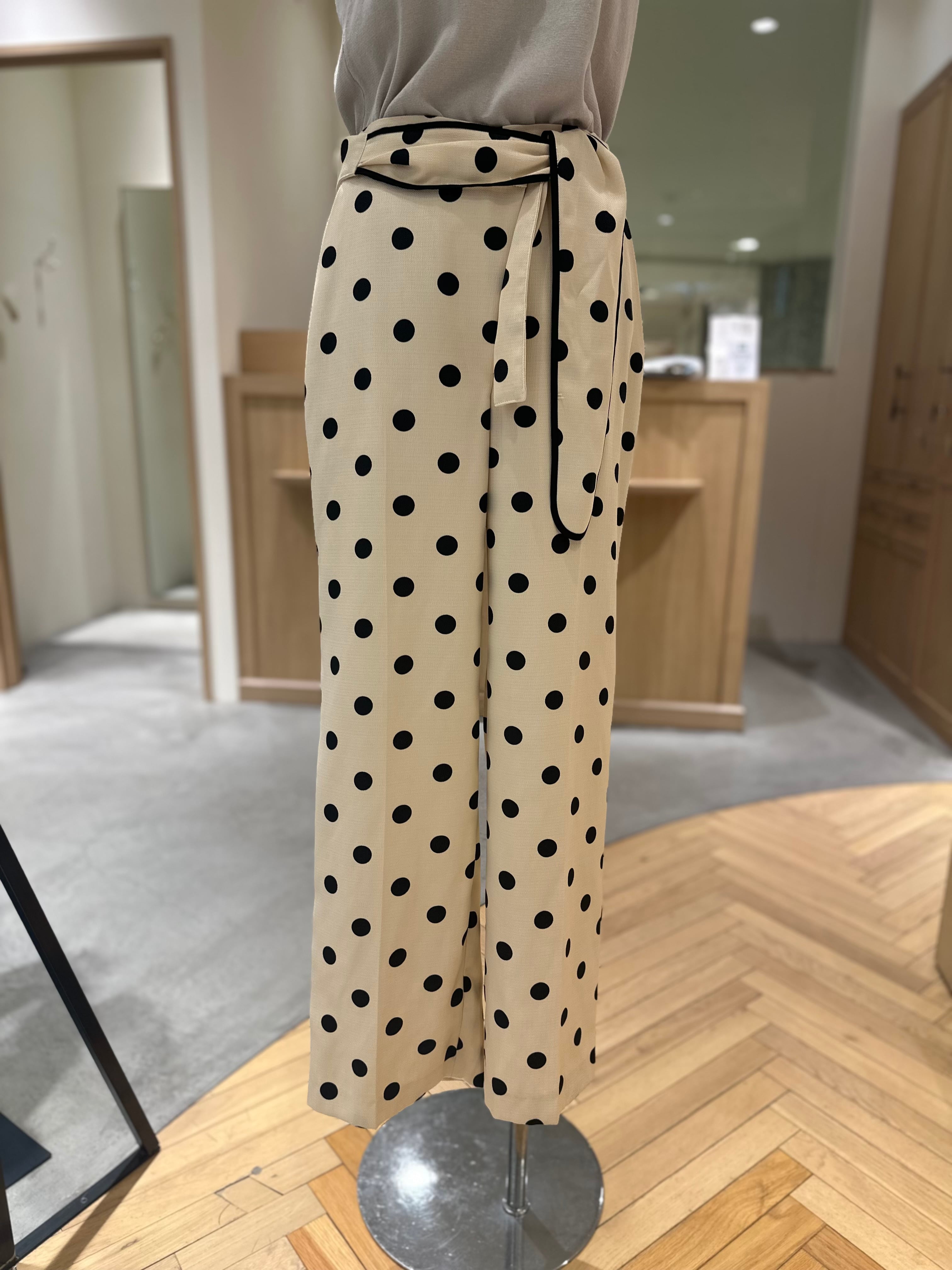 上品なのに、ちゃんと華やぐドット柄パンツ。