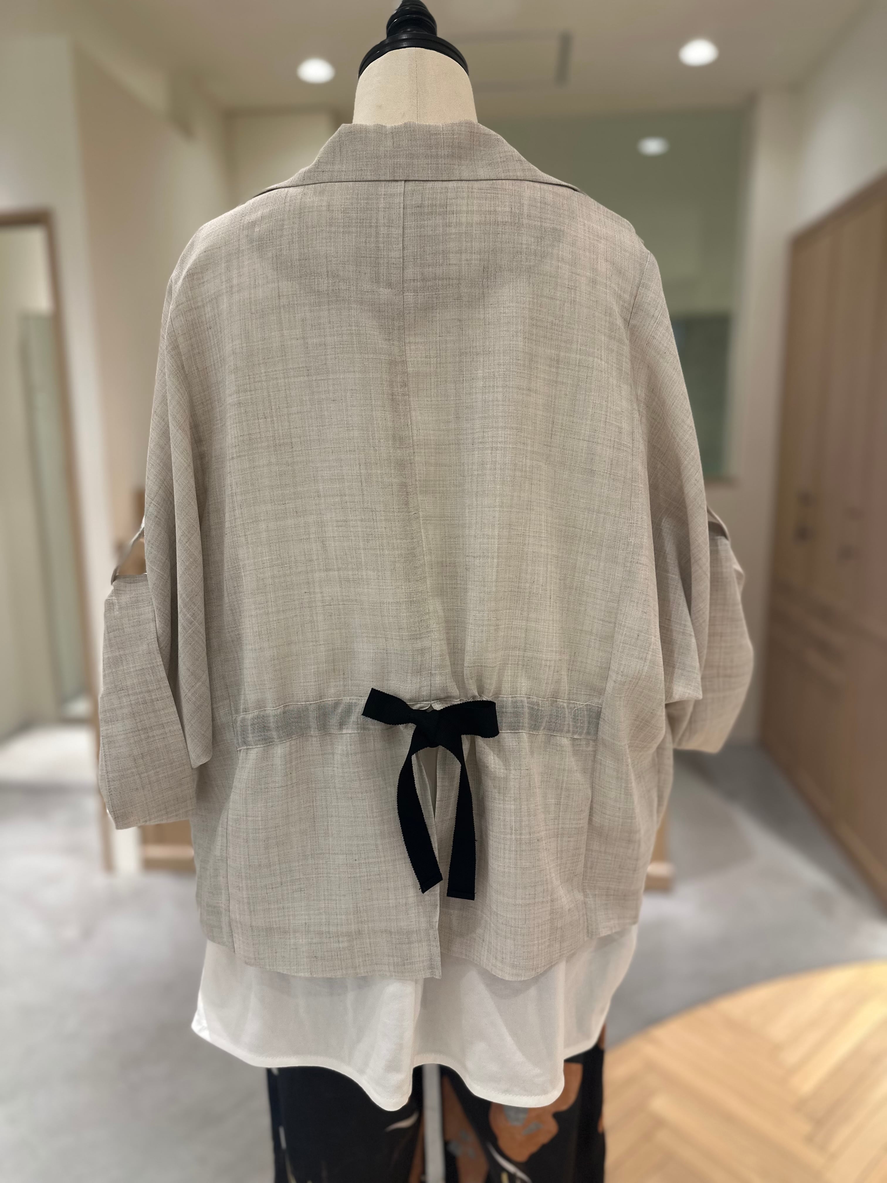 リサイクルポリエステルを使用した合繊素材でありながらナチュラルな表情と柔らかな雰囲気を併せ持ち、かっちりし過ぎないサマージャケット。軽量でシワになりにくく、ホームケアできるためオフィスシーンやご旅行など持ち運びにも便利です。ゆったりとした着心地でシャツやカーディガンに並ぶ夏の羽織としてスタイルのバリエーションを広げてくれます。