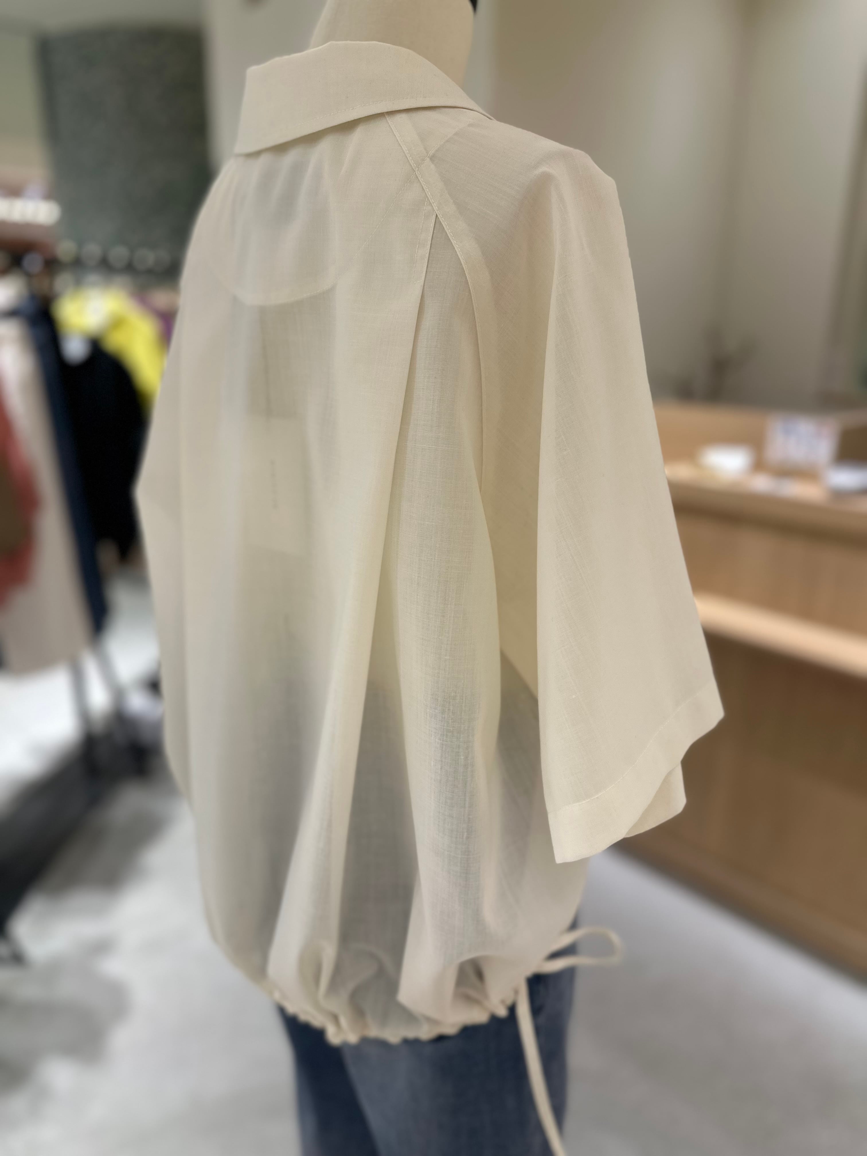 ほんのり透け感のあるシアーウール素材が軽やかなショートシャツ。