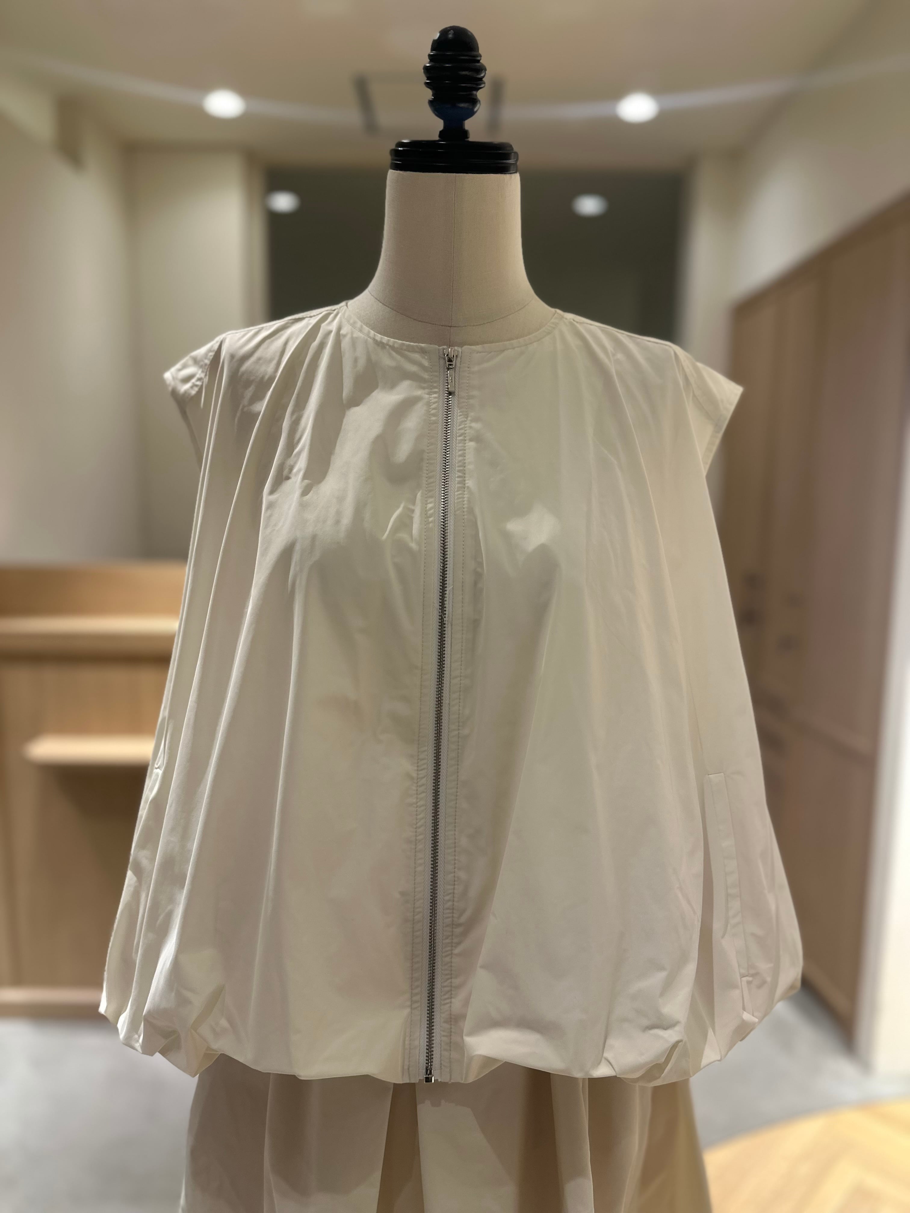 軽やかなシルエットとボリューム感を兼ね備えたバルーンベストは、ひとつ取り入れるだけでスタイリングを一新してくれます。全体的にふんわりとしたデザインが目を引き、洗練された印象を与えるアイテムです。