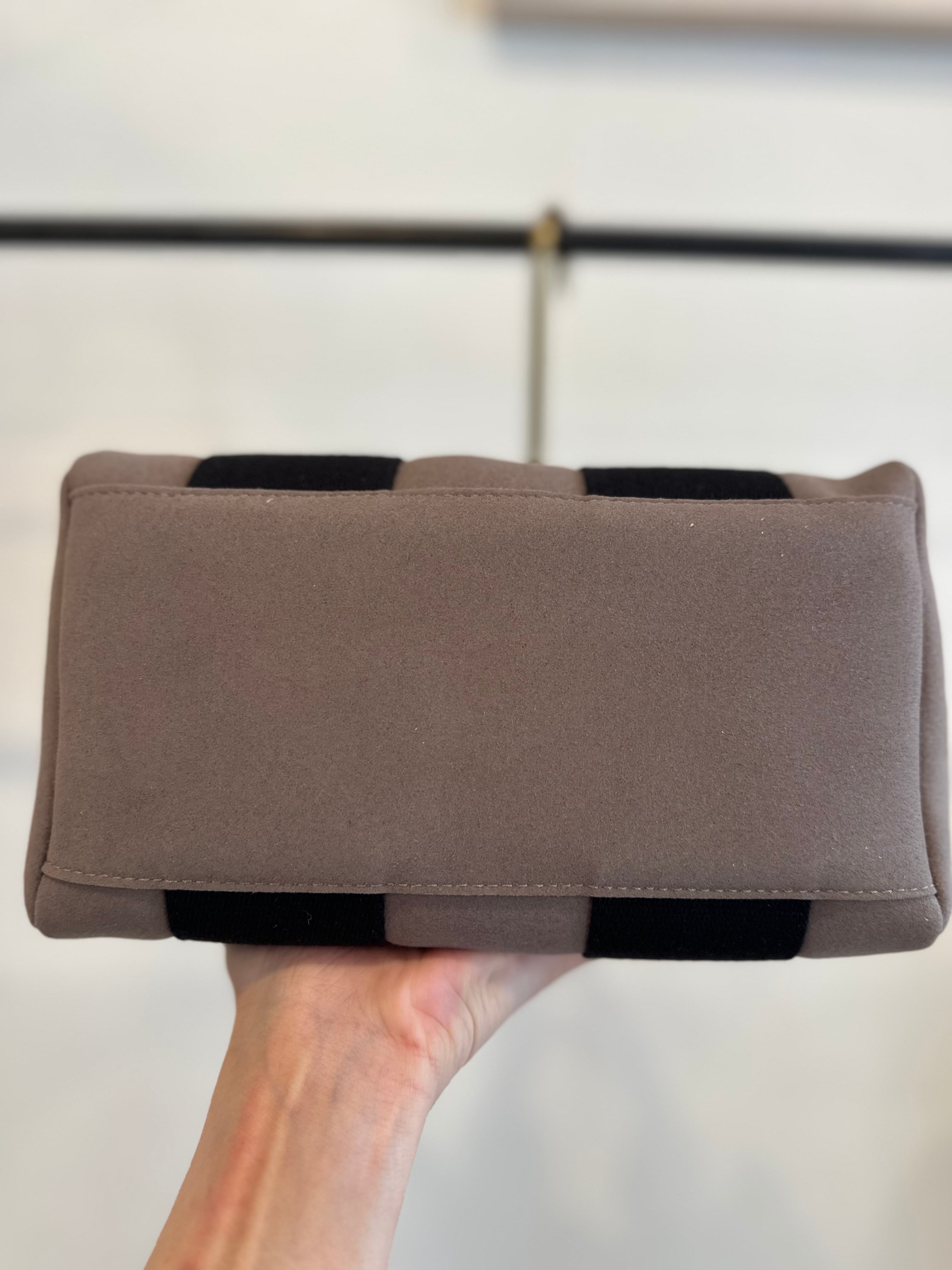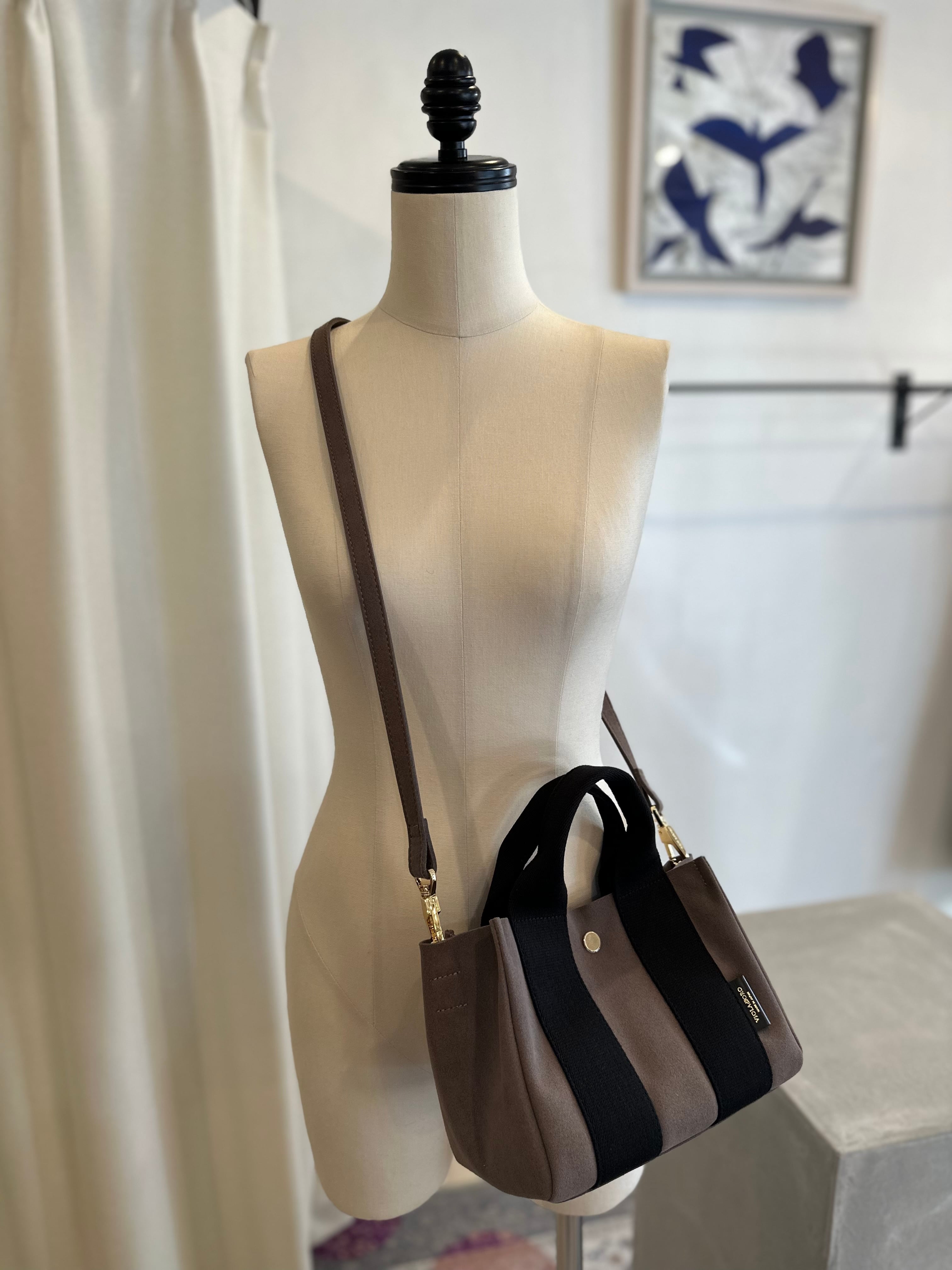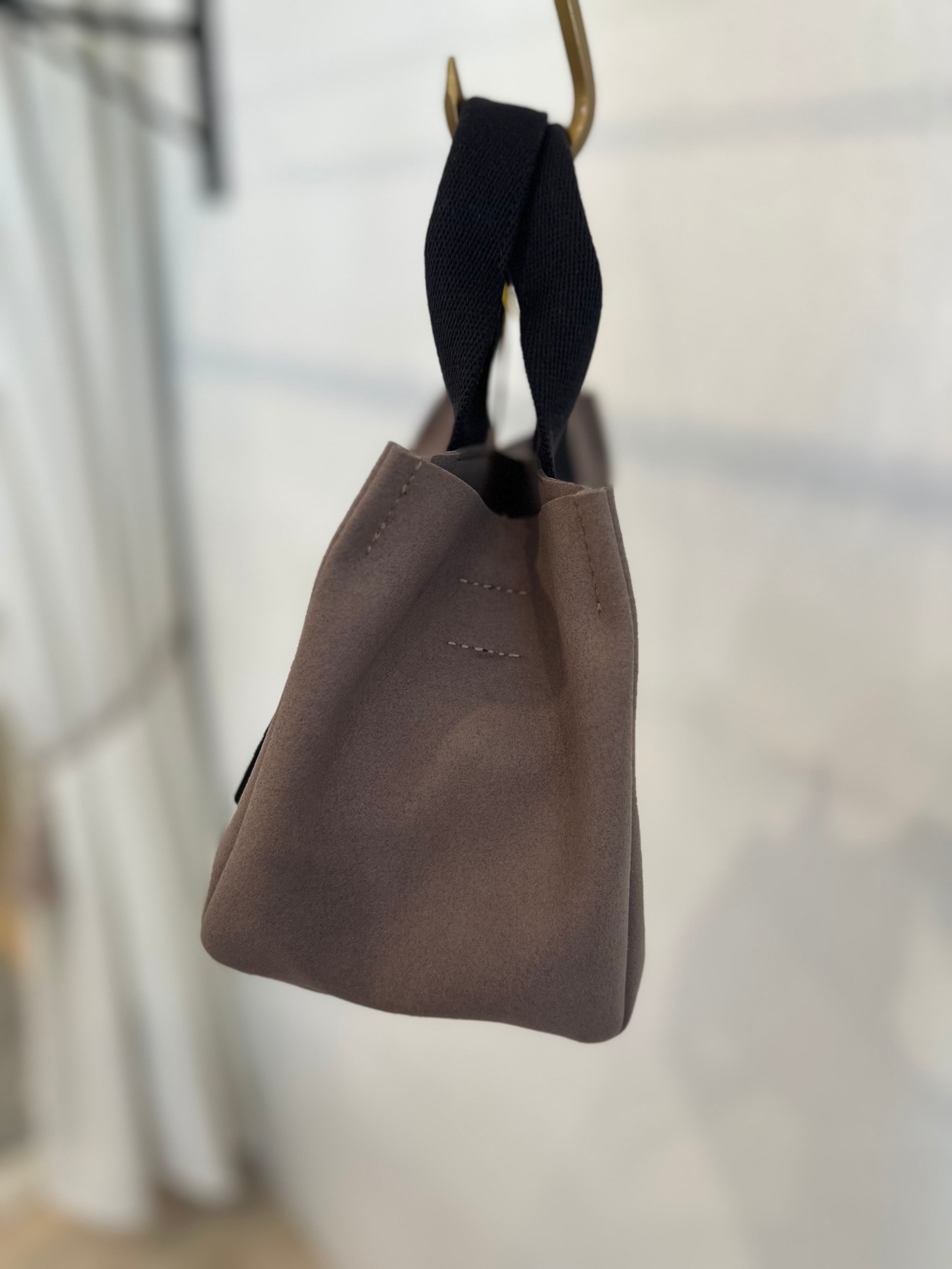 スエード調のハイテク素材を使用したトートバッグのSサイズ。
